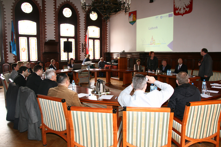 Szwedzcy partnerzy spotkali się z Włodzimierzem Klatą Burmistrzem Miasta oraz Alicją Zajączkowską Zastępcą Burmistrza Miasta w lęborskim ratuszu, gdzie przedstawiono prezentację multimedialną o naszym mieście, jego zabytkach i gospodarce oraz perspektywach rozwoju przedsiębiorczości w kontekście zwiększenia atrakcyjności i dostępności terenów inwestycyjnych w Lęborku. Tematem dyskusji były także lokalne podatki, struktura własności lokali mieszkaniowych oraz polityka edukacyjna w zakresie kształcenia zawodowego. Goście zadali wiele pytań dotyczących cen nieruchomości, warunków zakładania działalności gospodarczej oraz współpracy zagranicznej firm. Następnie odbyły się wizyty w 3 lęborskich firmach: ZWAE Sp. z o.o., AMG Sp. z o.o. oraz Project Sp. z o.o., w których właściciele i pracownicy oprowadzili po swoich przedsiębiorstwach, zapoznali gości z procesami produkcyjnymi oraz ofertami sprzedaży. Zwiedzający byli pod wrażaniem sprzętu, świetnej organizacji oraz polityki marketingowej przedsiębiorstw. Na koniec wizyty w każdej firmie partnerzy zagraniczni otrzymali materiały promocyjno-informacyjne. Na pożegnanie przedstawiciele Lidera Projektu i Uniwersytetu Gdańskiego wyrazili zadowolenie ze spotkania oraz nadzieję, że praca w projekcie przyniesie wymierne korzyści. Zgodnie z harmonogramem projektu jesienią odbędzie się rewizyta, w której udział wezmą przedstawiciele polskich gmin biorących udział w projekcie (Koszalin, Lębork, Słupsk, Wałcz i Żukowo) oraz przedsiębiorcy z Polski.