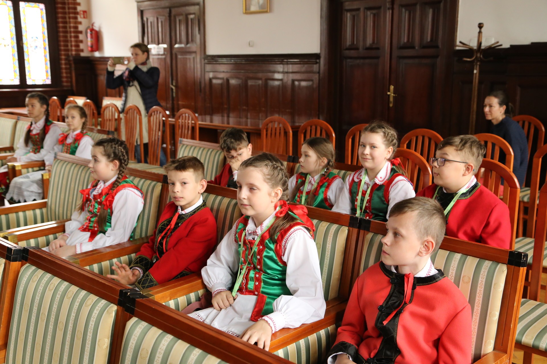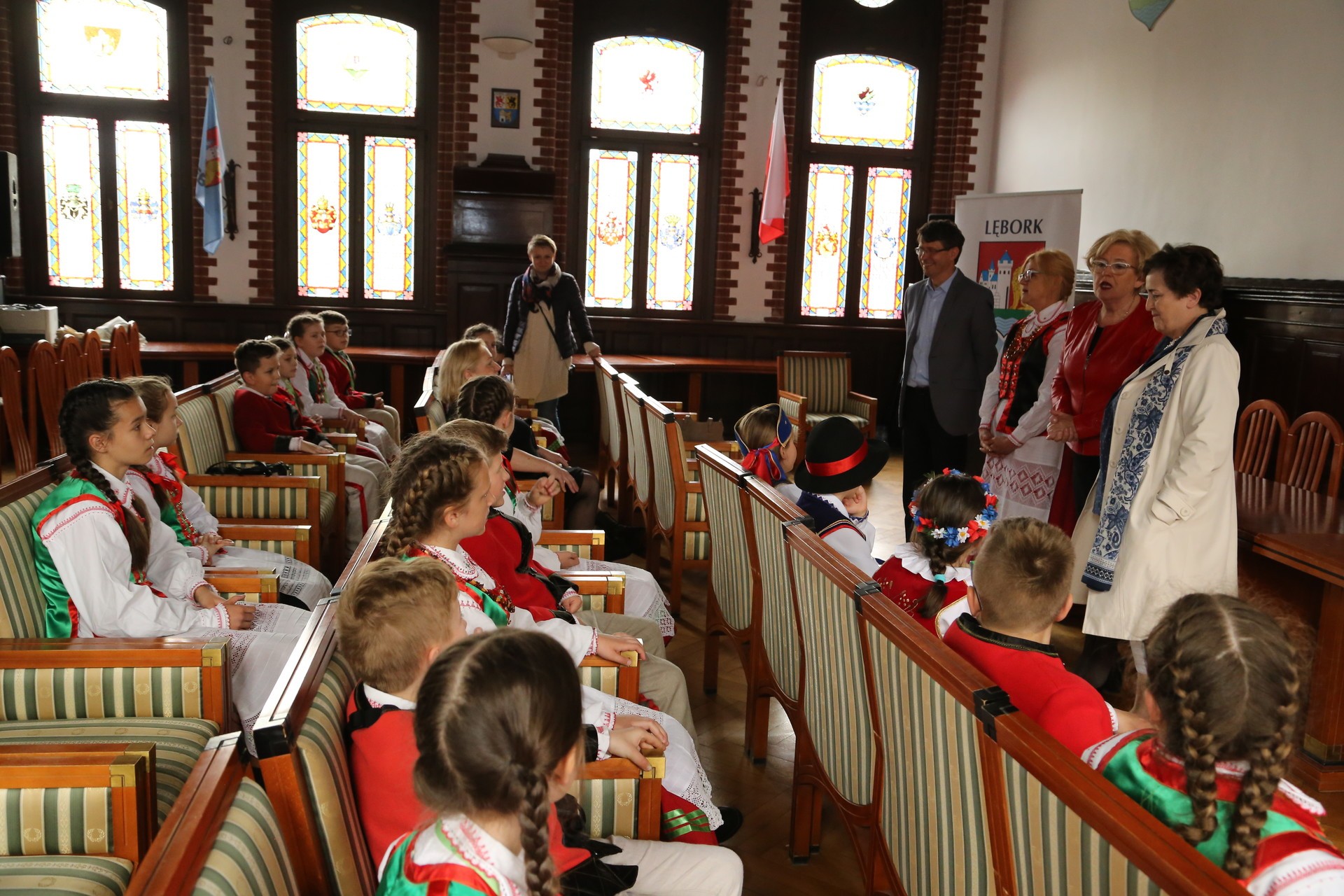 Lęborski ratusz odwiedzili w piątek uczniowie z Kadzidła (Województwo Mazowieckie). Uczniów wraz z opiekunami przywitali Zastępcy Burmistrza Miasta – Teresa Ossowska-Szara oraz Jerzy Pernal.