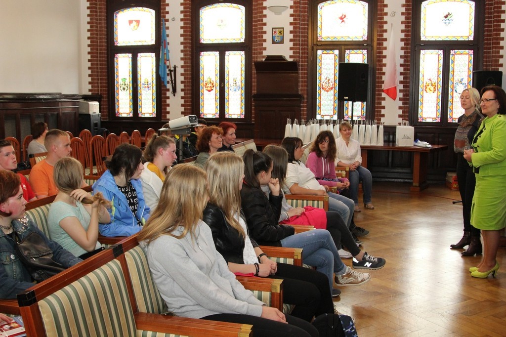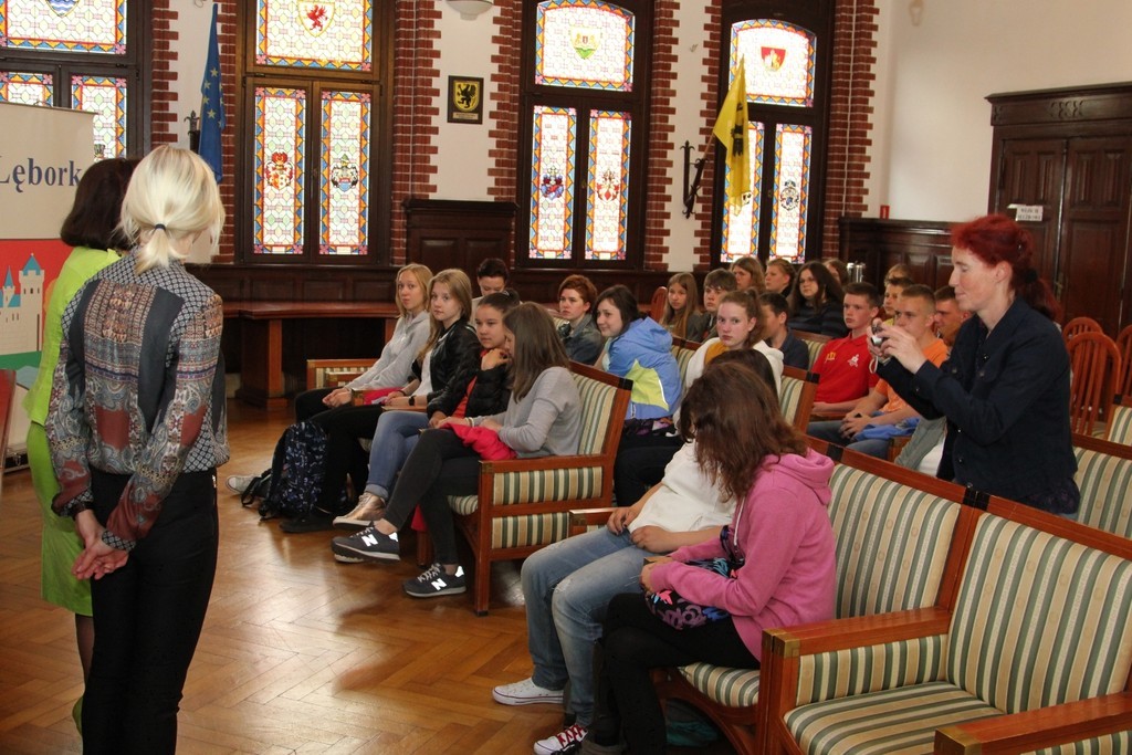 18 czerwca br. Urząd Miejski odwiedziła grupa uczniów z niemieckiego miasta Stralsund, która przebywała w Lęborku w ramach współpracy ze Społecznym Gimnazjum Językowym.
