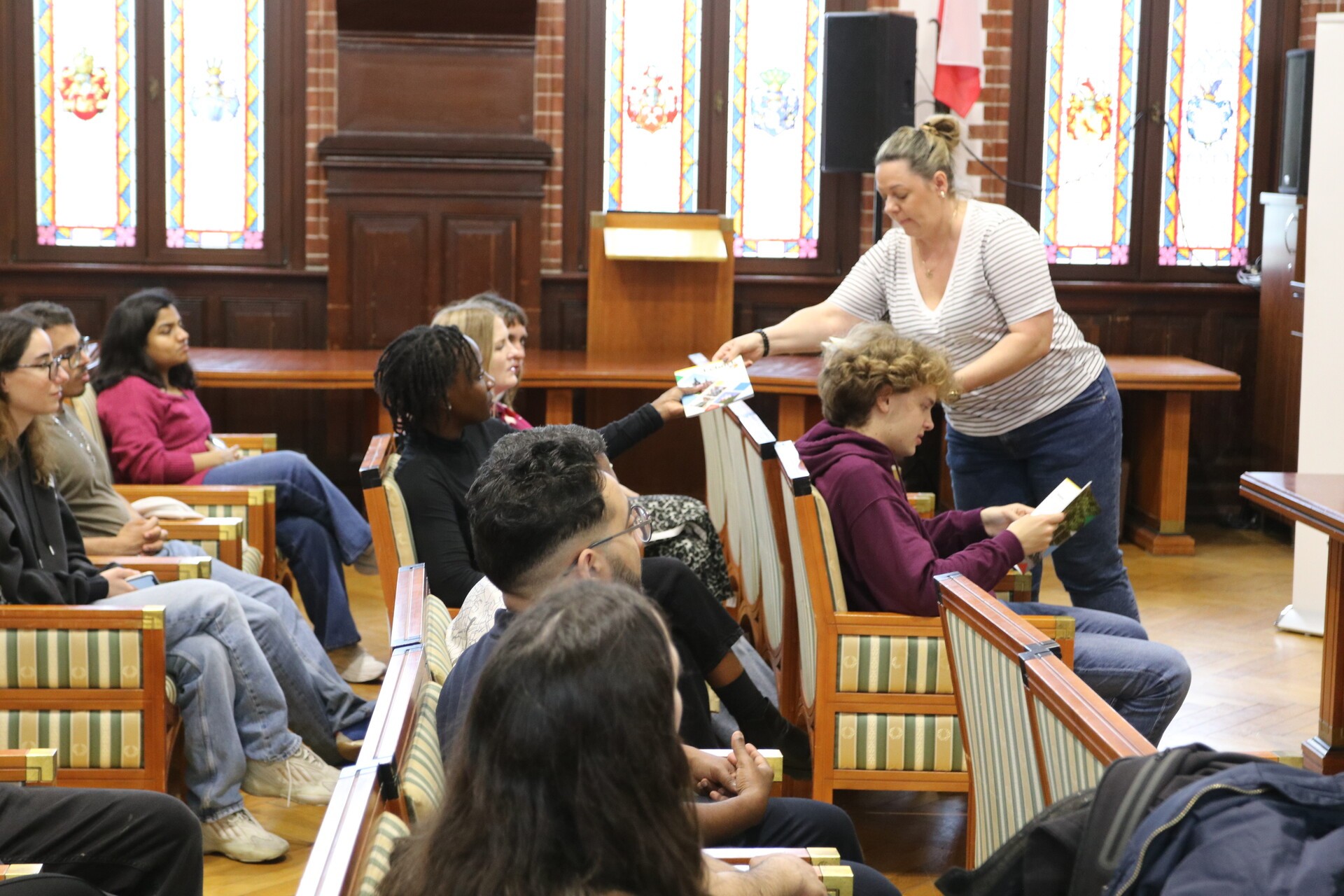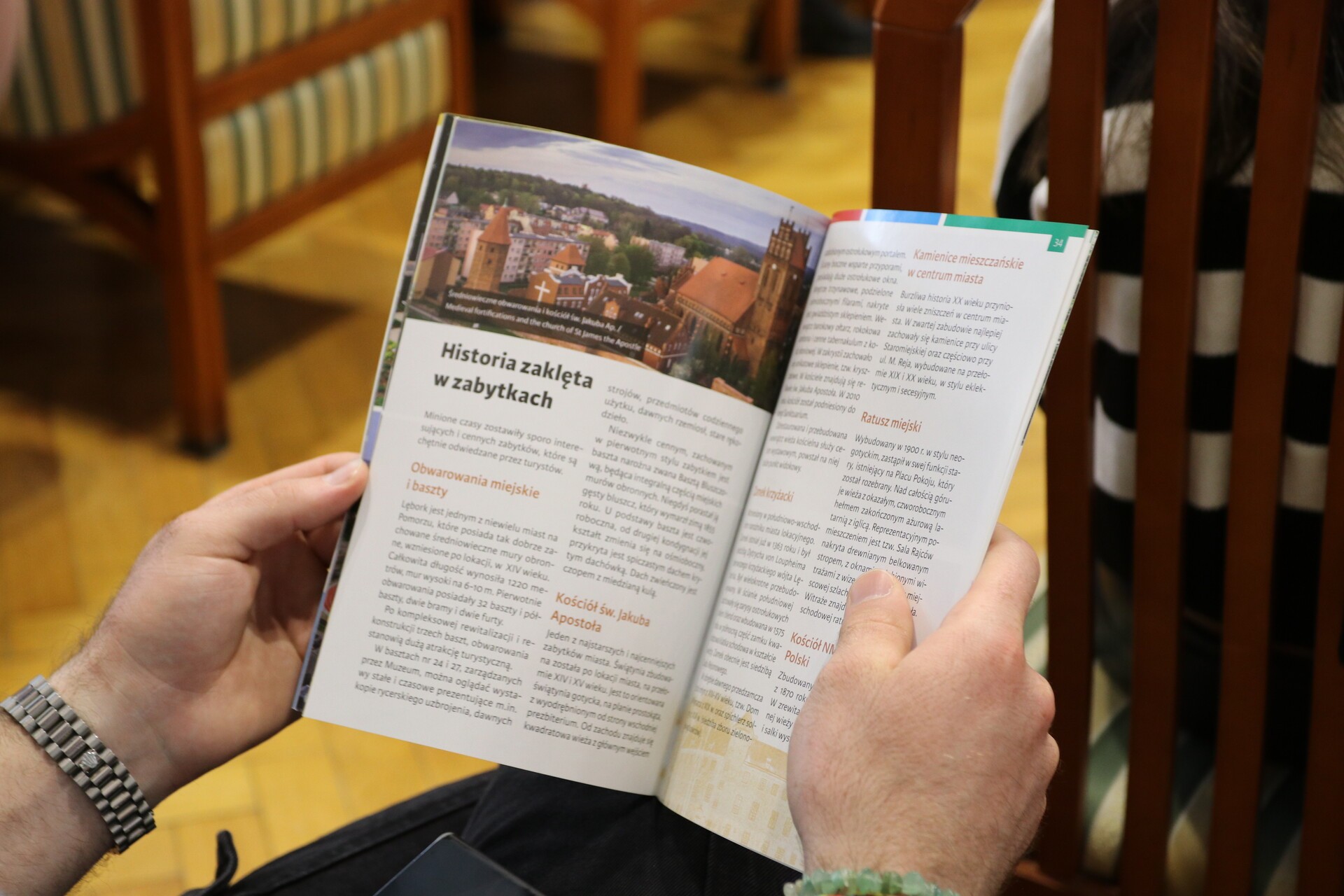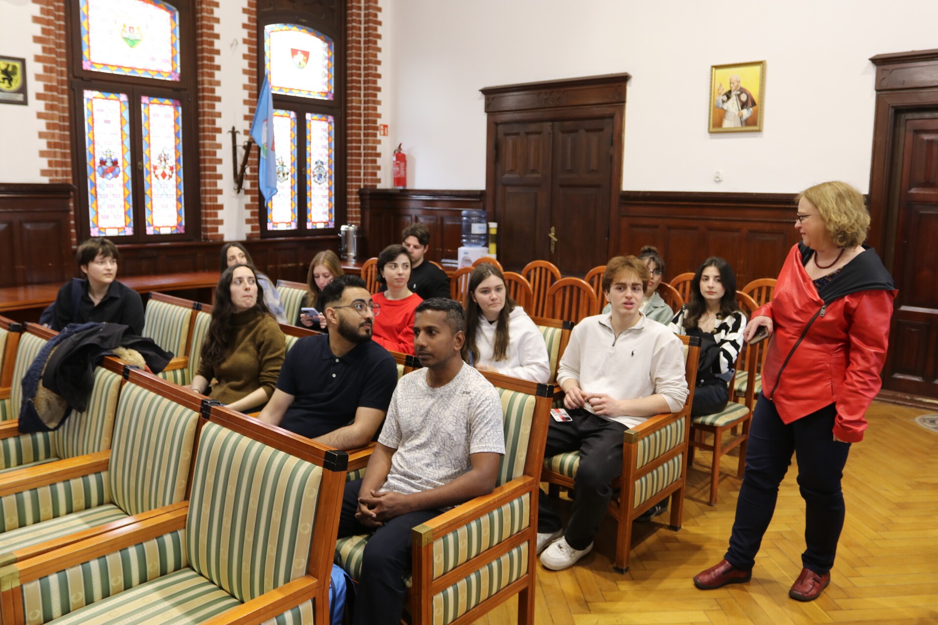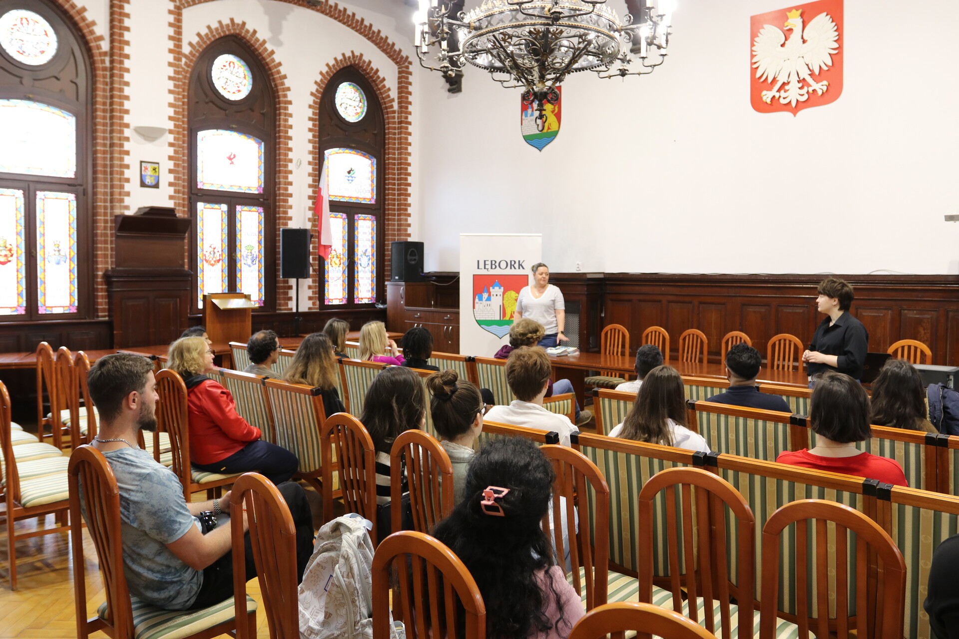 W ratuszu zwiedzili Salę Rajców, wysłuchując ciekawostek i zajrzeli do skarbca. Otrzymali też foldery promocyjne napisane w języku polskim i angielskim.