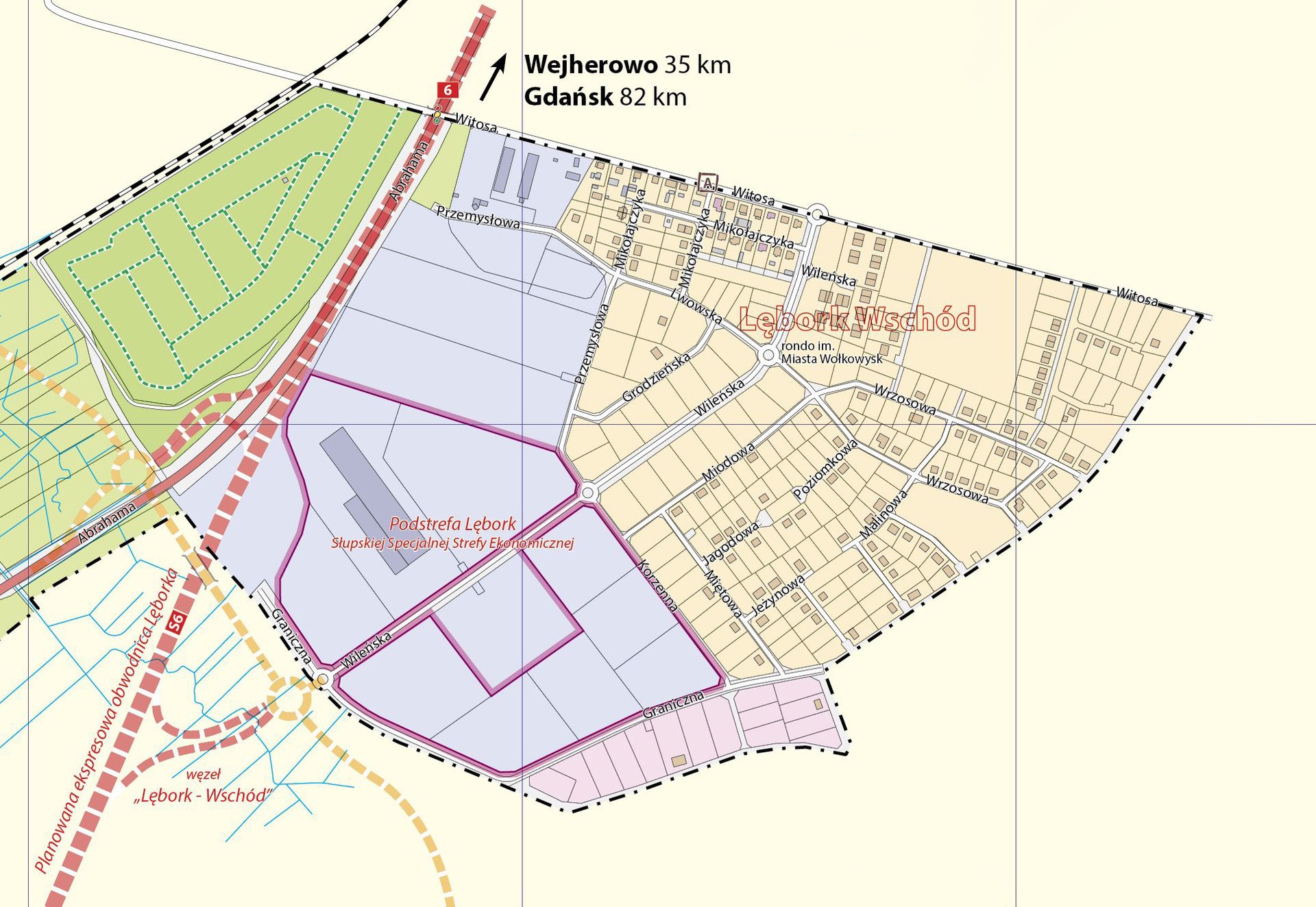 Zakres zadań obejmuje budowę nawierzchni asfaltowej wraz z kanalizacją deszczową (w tym budowę zbiorników odsączających) oraz chodników, a na niektórych odcinkach ciągów pieszo-jezdnych z kostki betonowej – na ul. Poziomkowej, Jagodowej, Jeżynowej i Malinowej i części Wrzosowej oraz odcinku ul. Granicznej. Pierwszy odcinek ul. Granicznej (asfalt) wraz z oświetleniem wybudowany został w 2021 roku.