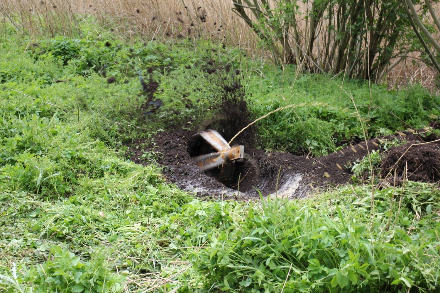 Na zdjęciach proces przewiertu sterowanego pod rzeką Łebą przy Stacji Uzdatniania Wody.
