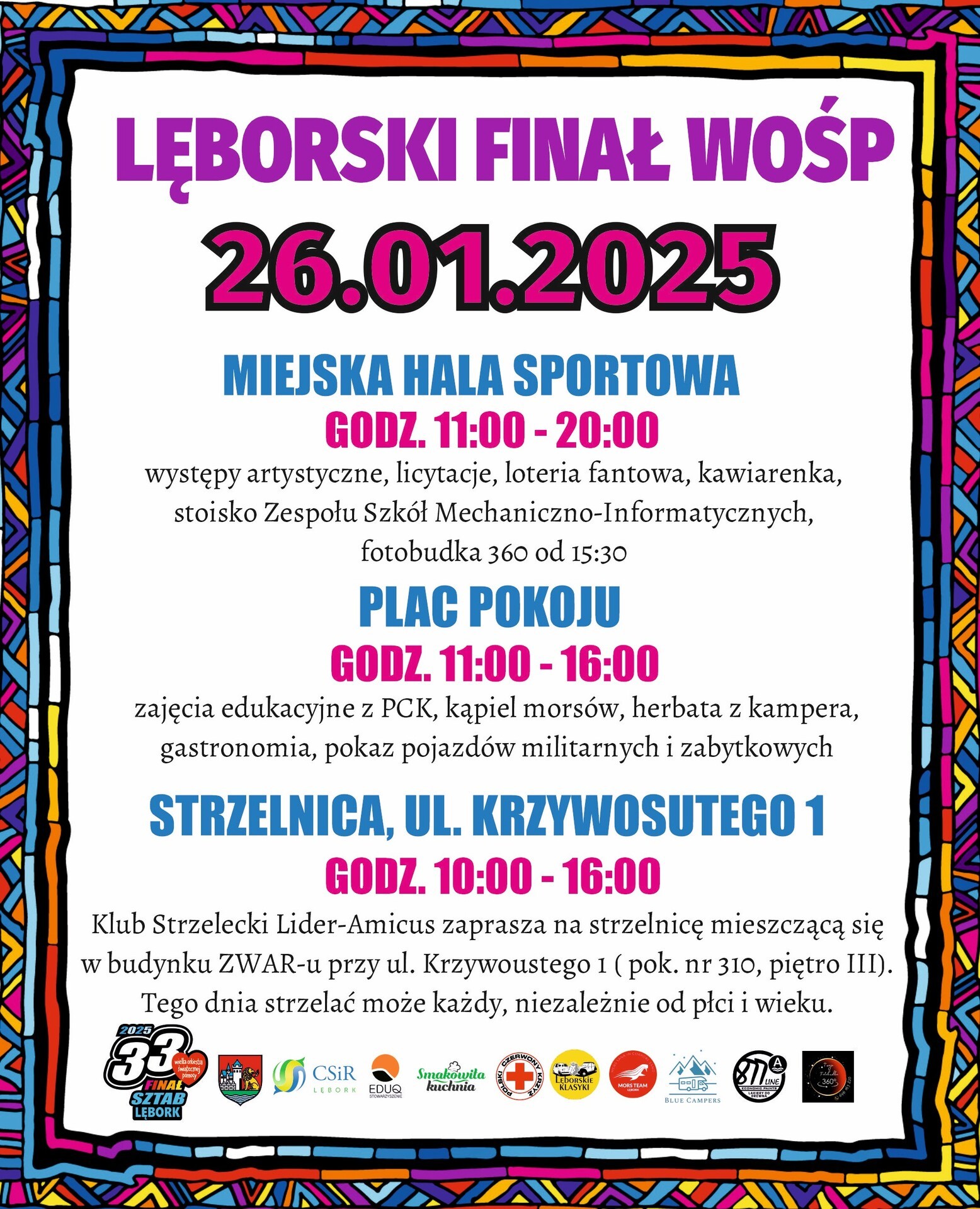 Dziś, 26 stycznia, w Lęborku odbywa się 33. Finał Wielkiej Orkiestry Świątecznej Pomocy. Od godz. 11:00 zapraszamy do Miejskiej Hali Sportowej przy ul. P. Skargi 52, gdzie czeka mnóstwo atrakcji.