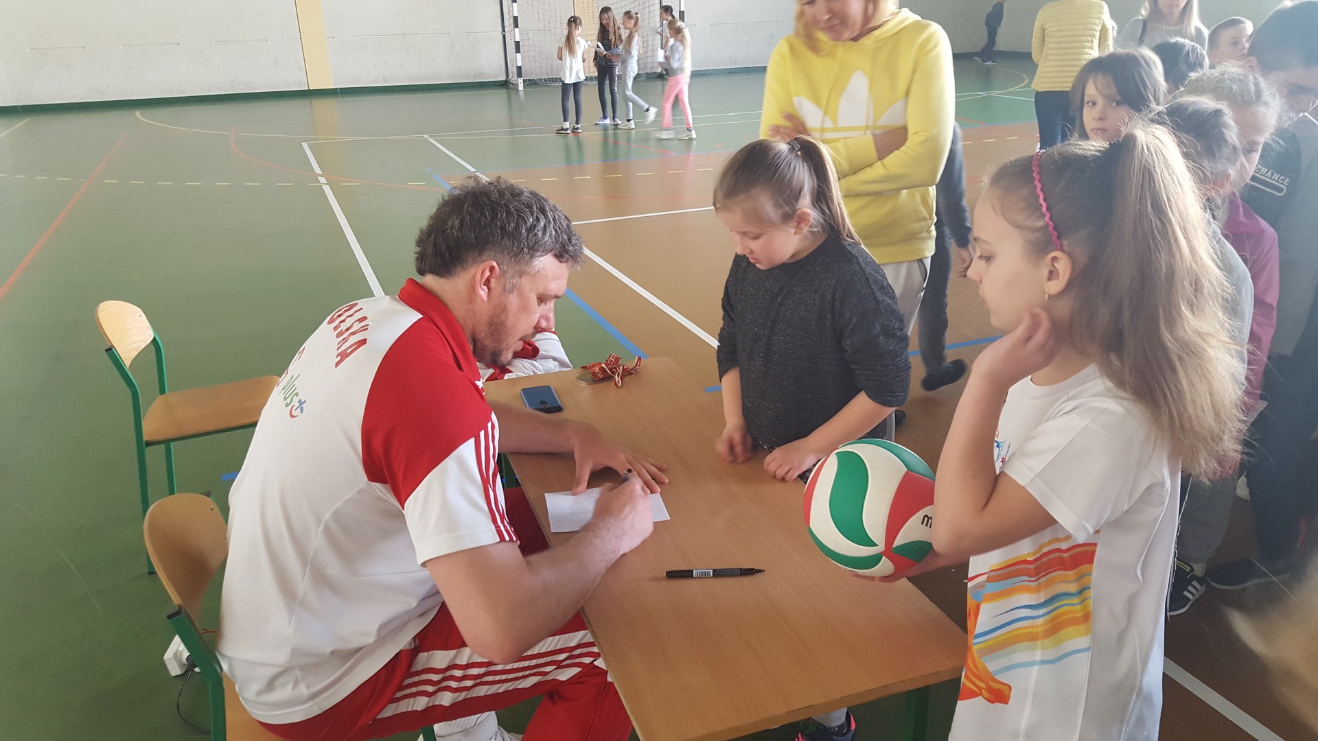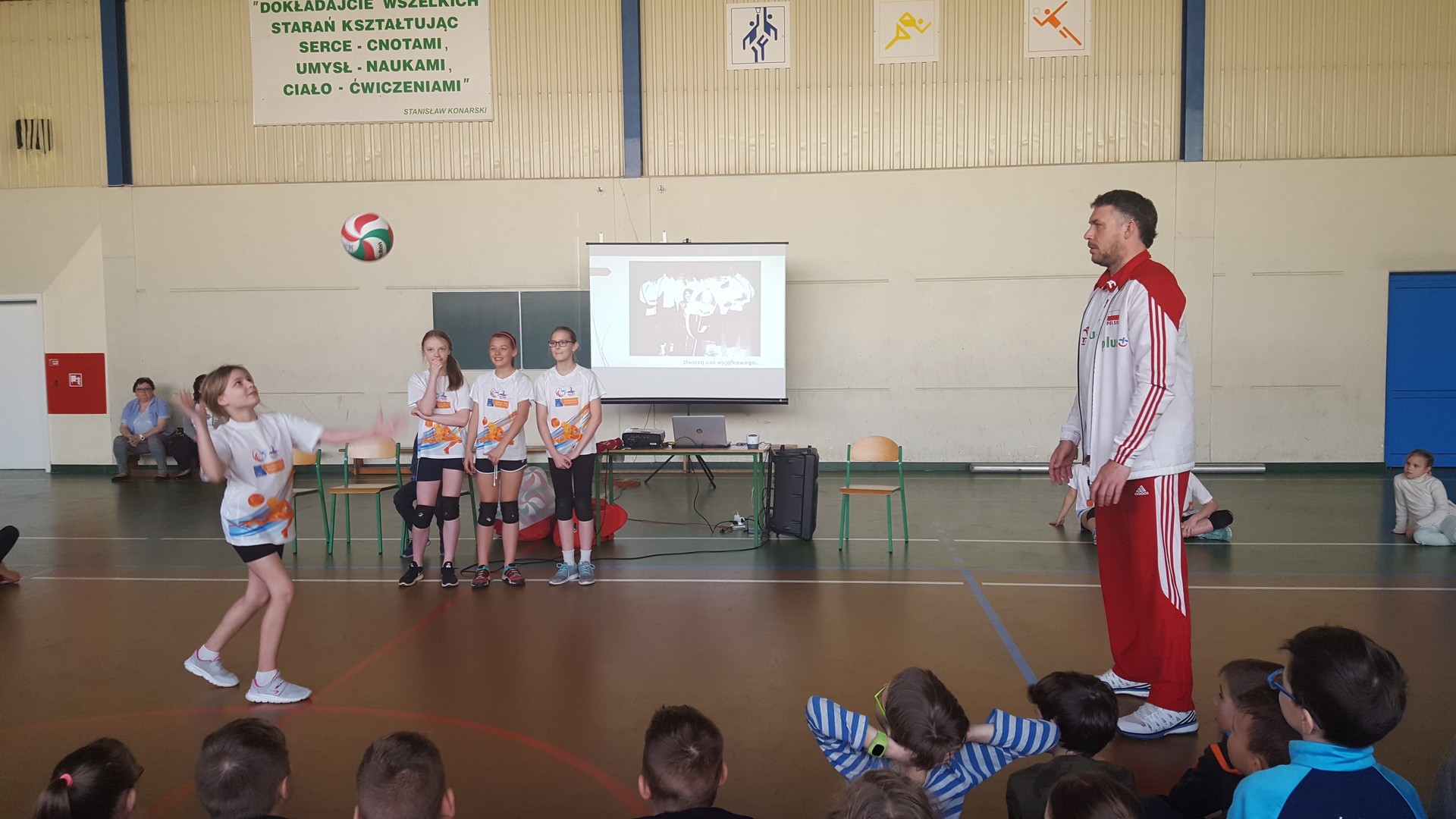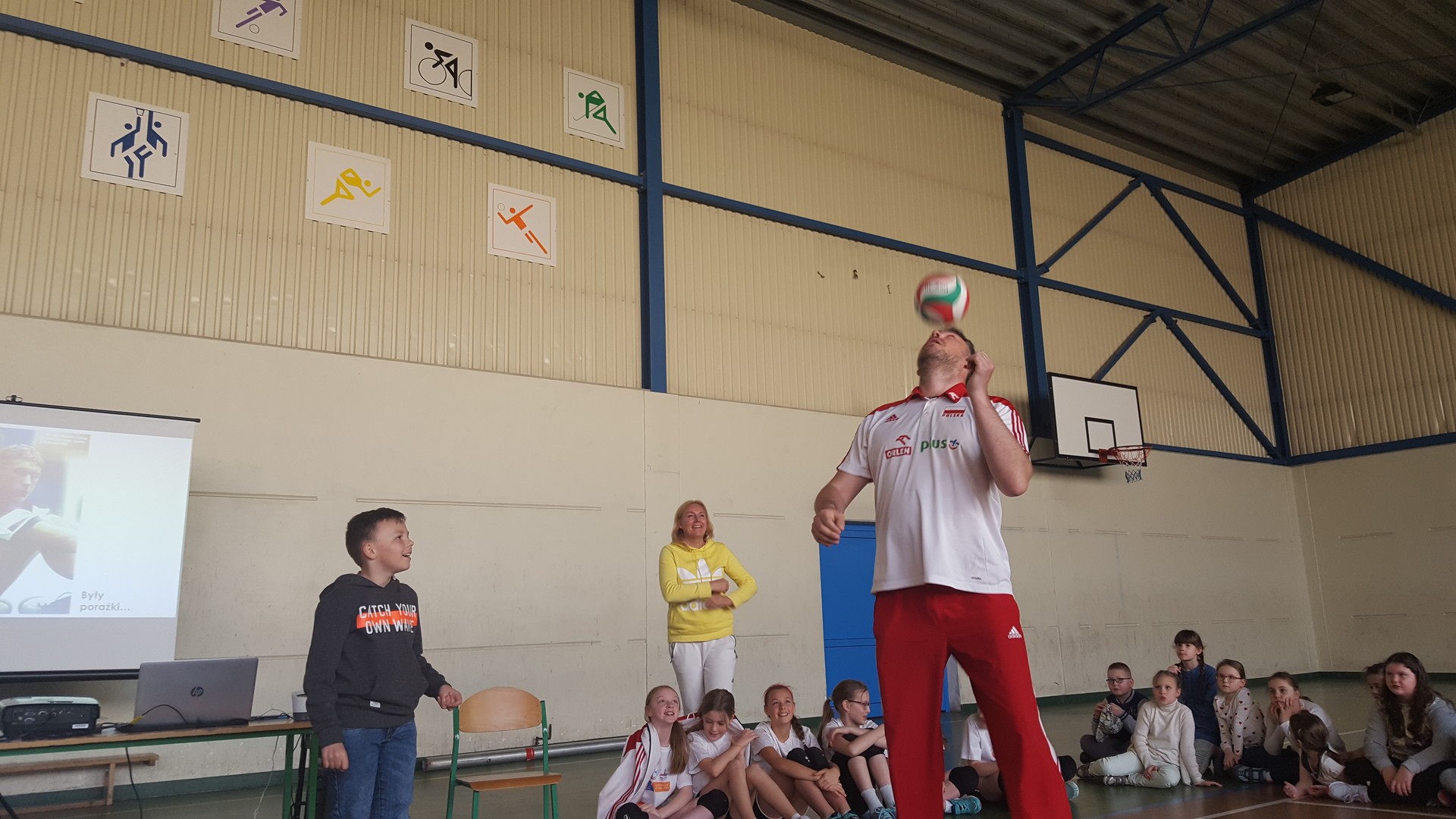 Zaproszony gość promował aktywny styl życia, uprawianie sportu, a szczególnie siatkówki. Były siatkarz w atrakcyjny sposób opowiadał o swojej przygodzie z siatkówką, o bogatej karierze zawodniczej i drodze do niej. Ukazywał korzyści z uprawiania sportu i zachęcał do korzystania z szans rozwoju, jakie stwarza w tym względzie uczniom szkoła. Demonstrował swoje umiejętności. Po spotkaniu chętni otrzymali autograf siatkarza.