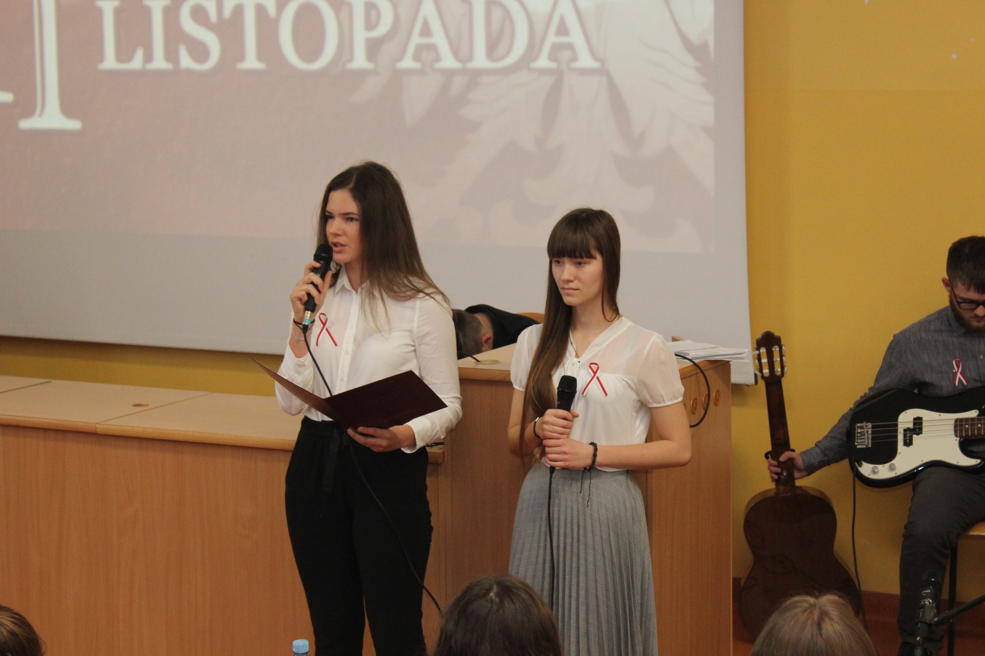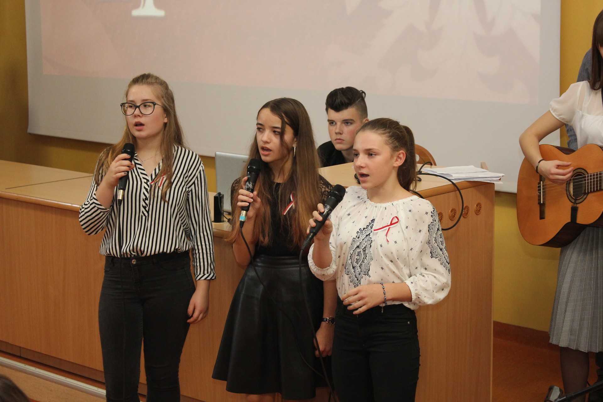 Wykład poprzedził patriotyczny występ i prezentacje multimedialne uczniów Społecznego Gimnazjum Językowego i Społecznego Liceum Ogólnokształcącego w Lęborku.