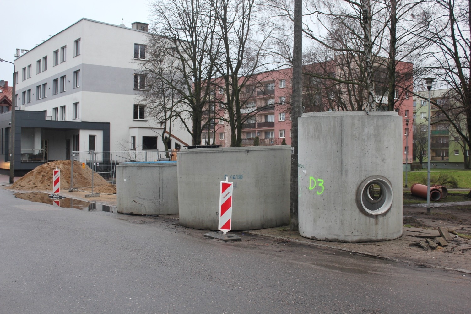 Trwa też budowa nowych miejsc postojowych przy ul. Żeromskiego (wzdłuż ogrodzenia firmy Poltarex). Na długości 140 metrów powstaje oświetlony, wyłożony kostką kamienną parking na 49 pojazdów. Wartą ok. 232 tys. zł inwestycję realizuje w formule zaprojektuj i wybuduj firma Usługi Ogólnobudowlane Leszek Piechowski z Pogorszewa.