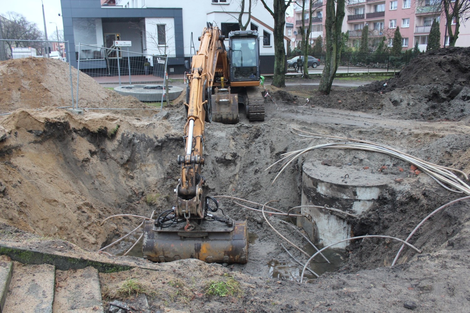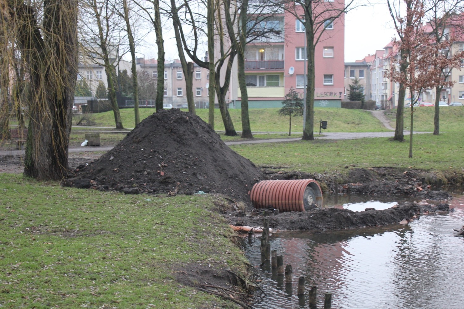 Kilka dni temu rozpoczęły się prace ziemne przy budowie kanalizacji deszczowej w okolicy Parku im. Marii i Lecha Kaczyńskich i ulicy Bohaterów Monte Cassino. Inwestycja realizowana jest w ramach dużego projektu unijnego Lęborski Węzeł Przesiadkowy. W okolicach hotelu przy ul. Bohaterów Monte Cassino zainstalowany zostanie duży osadnik i separator z którego podczyszczone wody opadowe i roztopowe spłyną do stawku. Po wykonaniu całej kanalizacji posiadać on będzie funkcję przepływową z wylotem od strony ulicy Sienkiewicza. W ramach prac oczyszczony z mułu i zanieczyszczeń zostanie staw. Nowa funkcja stawu nie wyklucza bytowania na nim ptactwa m.in. obecnych od wielu lat w tym miejscu dzikich kaczek.