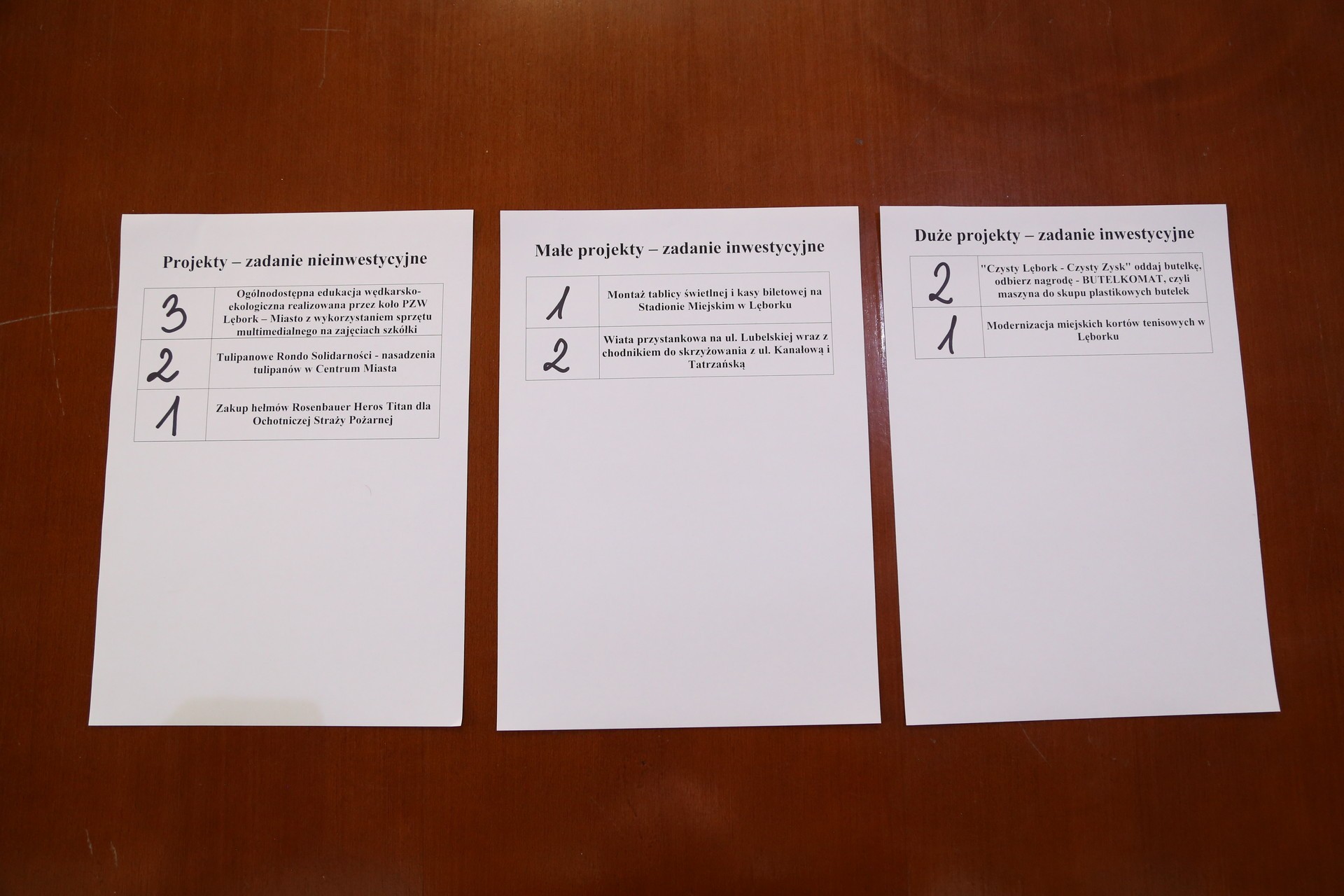 Wszystkie projekty dostępne są na stronie lebork.budzet-obywatelski.org. Poniżej zamieszczamy listy z numeracją.