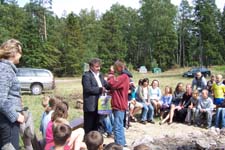 W poniedziałek 9 lipca dzieci odwiedzili Burmistrz Miasta Witold Namyślak i Naczelnik Wydziału Oświaty i Spraw Społecznych UM Marian Kurzydło. Dzieci powitały samorządowców harcerskimi piosenkami, a w rozmowach z burmistrzem potwierdziły, że choć słońca mało, wypoczywają i bawią się doskonale. Każde z dzieci obdarowane zostało słodyczami.