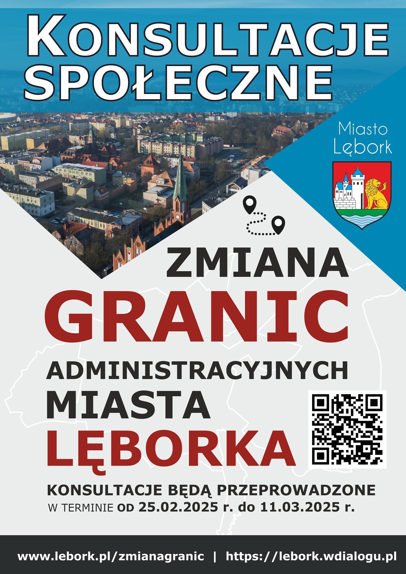 Zgodnie z uchwałą nr VIII-96/2025 Rady Miejskiej w Lęborku z dnia 17 stycznia 2025 r. w sprawie przeprowadzenia konsultacji w przedmiocie zmiany granic administracyjnych Gminy Miasto Lębork oraz Zarządzeniem Burmistrza Lęborka nr 42/2025 z dnia 18 lutego 2025 r. konsultacje z mieszkańcami Lęborka będą prowadzone poprzez udostępnienie ankiet: