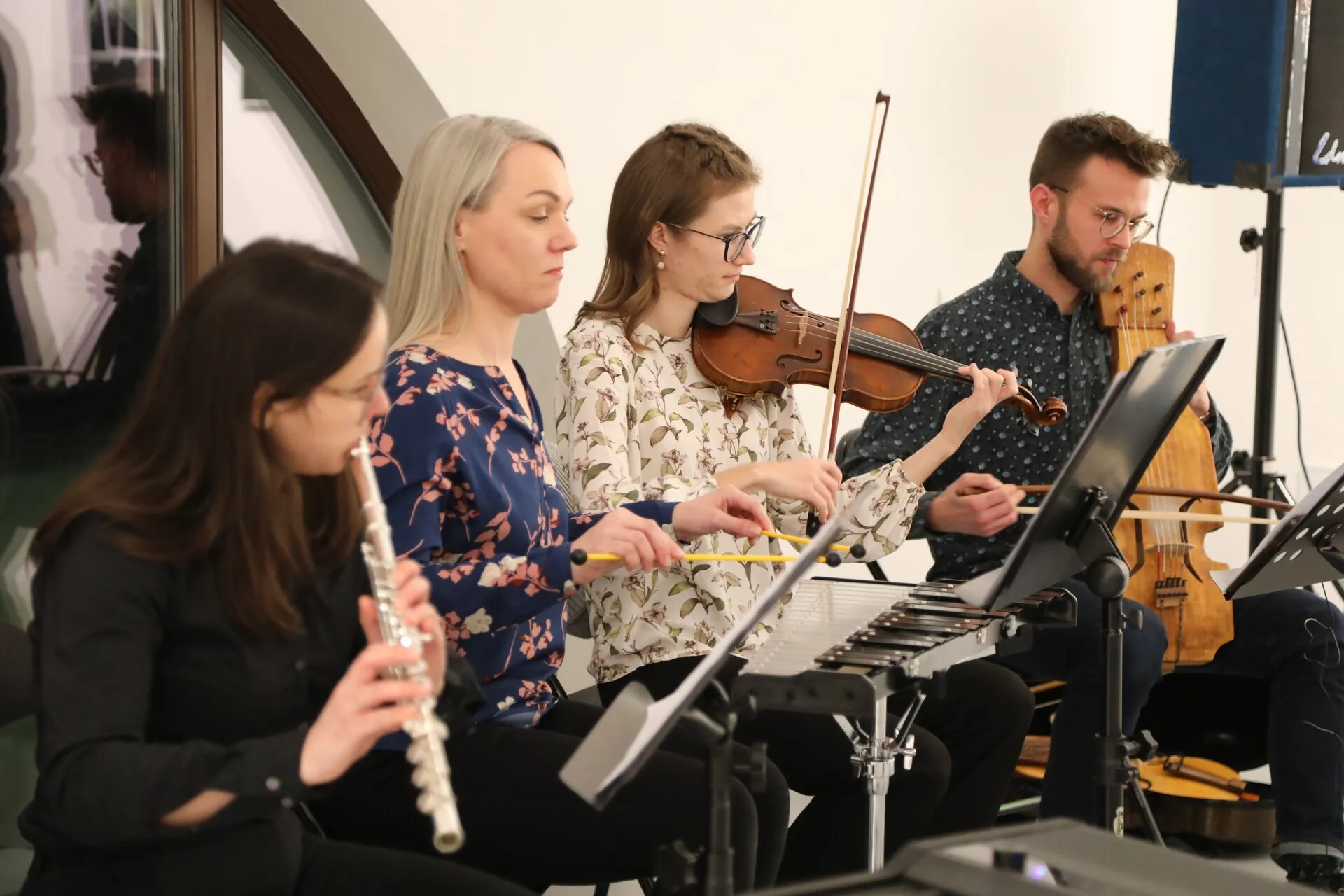 Na otwarcie wystawy publiczność wysłuchała kompozycji autorstwa Magdaleny Kreft pt. „Jesienna bossa-nova”, „Wiosenny walczyk”, „Reverie III”, „Reverie IV” oraz w opr. M. Pomianowskiej „Tristano” i „Służyłem ja tobie” oraz „Tourdion” w opr. M. Kempy.