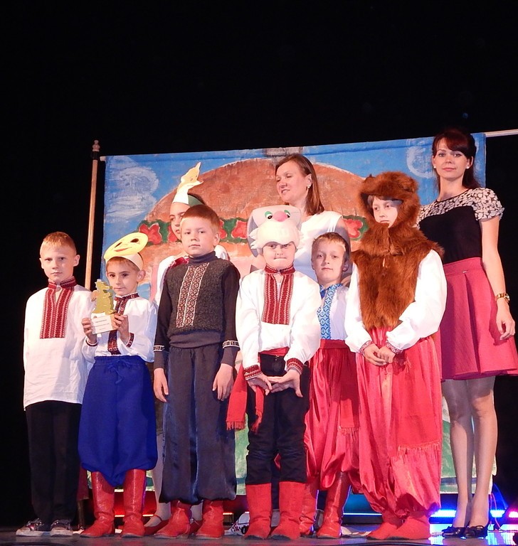 10.55. Switanok - grupa teatralna prezentująca przedstawienie w języku ukraińskim ze Szkoły Podstawowej nr 8, przedstawienie pt: „Kryweńka Kaczeczka”