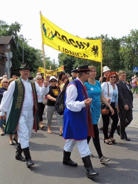 Autokarem dotarła lęborska grupa Kaszubów, by z dworca PKP przejść barwnym korowodem, przy muzyce Kociewsko-Kaszubskiej Orkiestry Dętej TORPEDA i kilku kapel regionalnych, do kościoła Podwyższenia Krzyża Świętego.