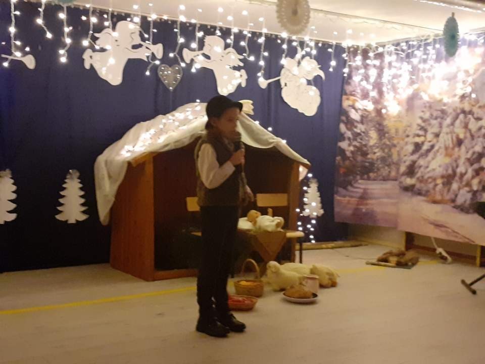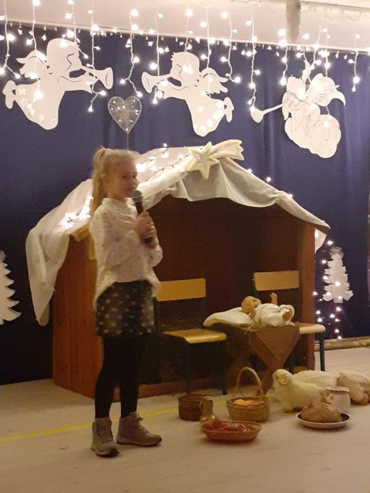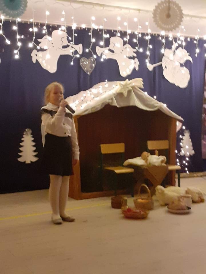 Po przedstawieniu jasełkowym, konkursowe utwory zaprezentowali drugoklasiści, którzy kolędy i pastorałki śpiewali a’cappella. W rolę konferansjerów wcielili się uczniowie z kl.III B „ósemki” Marta Szyłko i Ignacy Falitarski.
