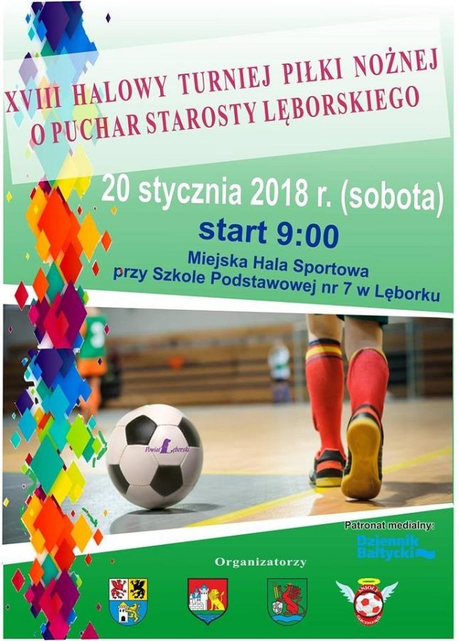 W najbliższą sobotę, 20 stycznia, w Miejskiej Hali Sportowej przy Szkole Podstawowej nr 7 w Lęborku odbędzie się XVIII Halowy Turniej Piłki Nożnej o puchar Starosty Lęborskiego. Początek gier o godz. 9.00.