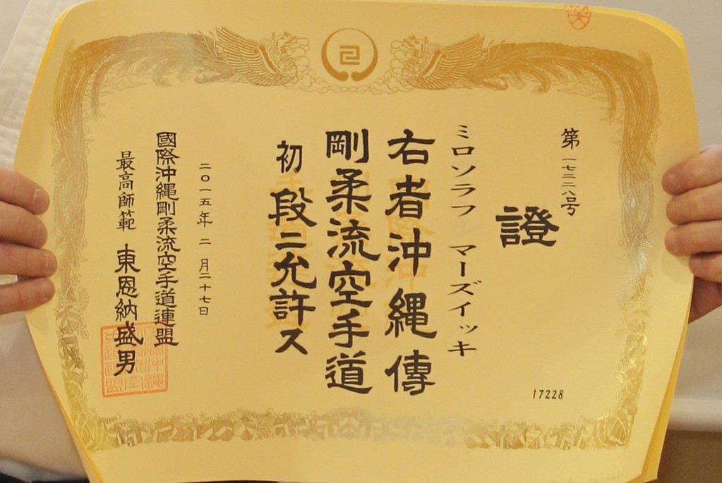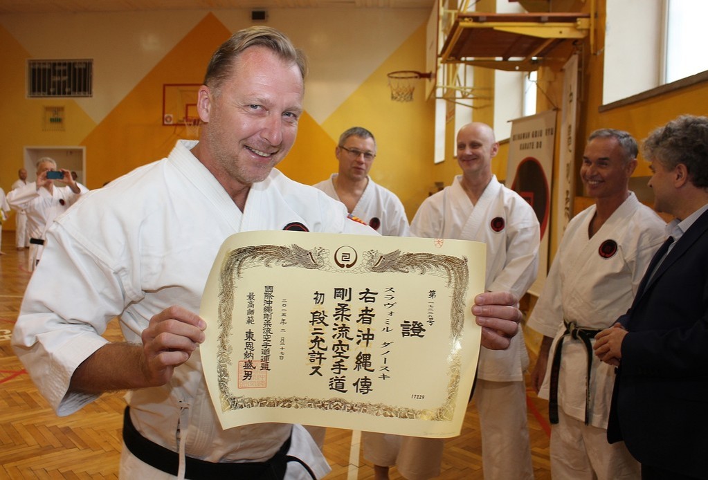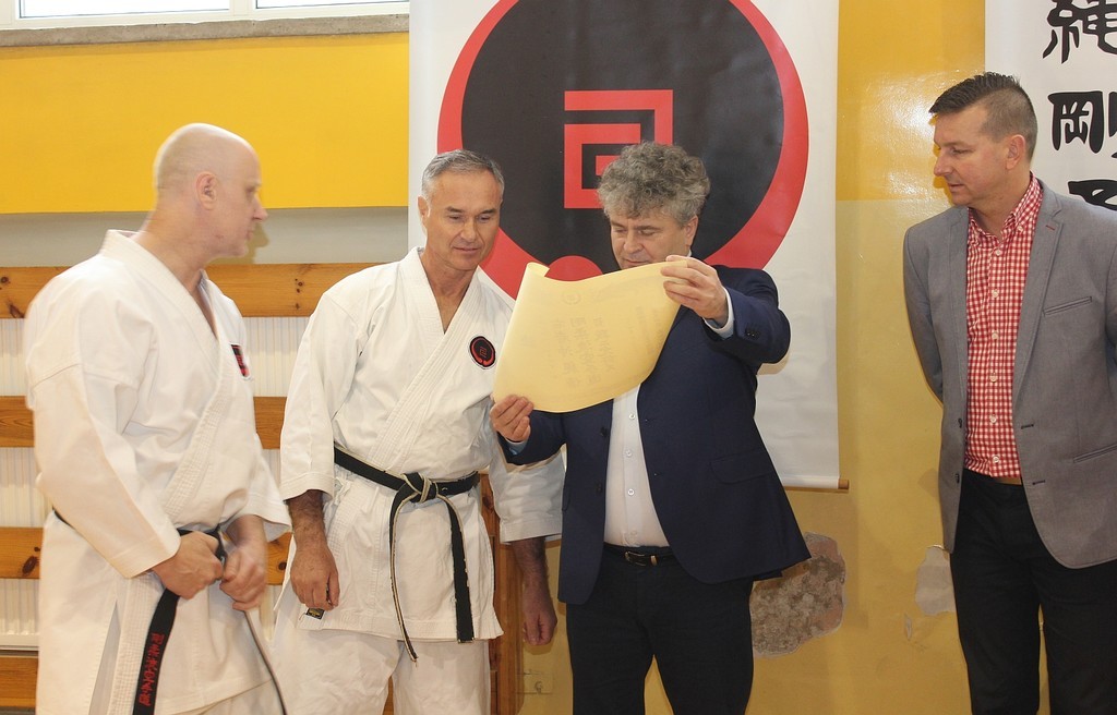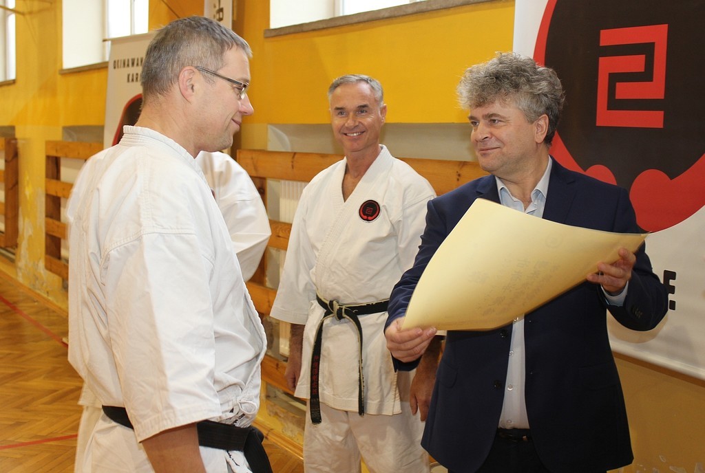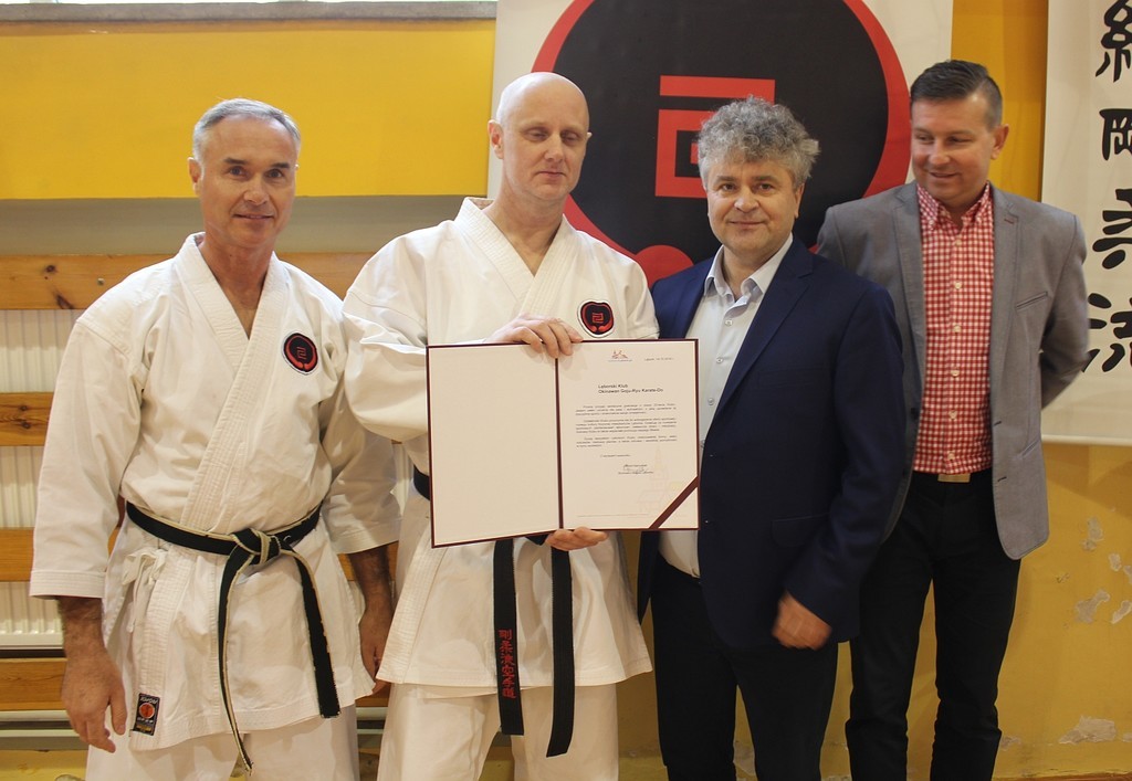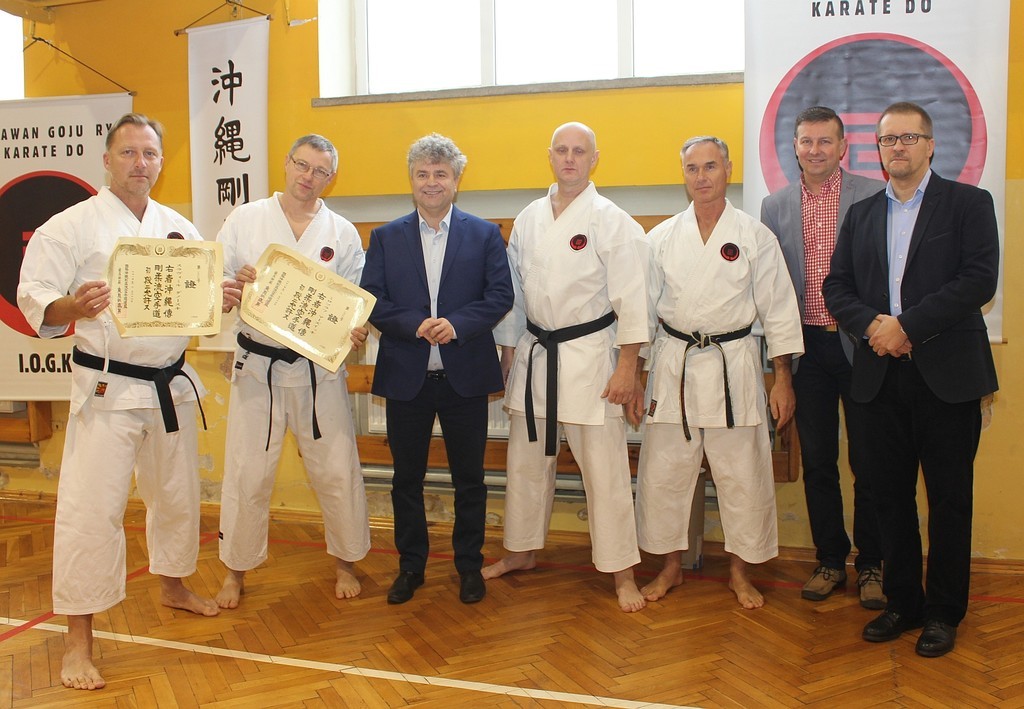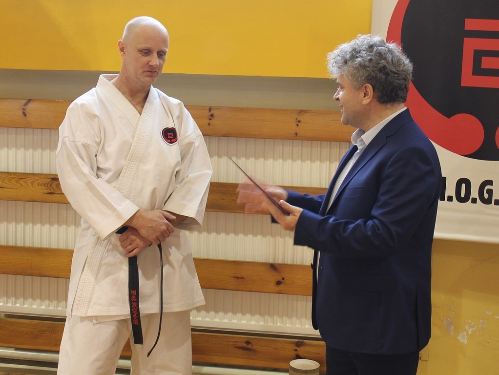 Jubileuszowe szkolenie było okazją do wręczenia dwóm uczniom, zawodnikom z wieloletnim stażem Certyfikatów na mistrzowski stopień 1 Dan. Otrzymali je Mirosław Małoszycki i Sławomir Zdanowski.