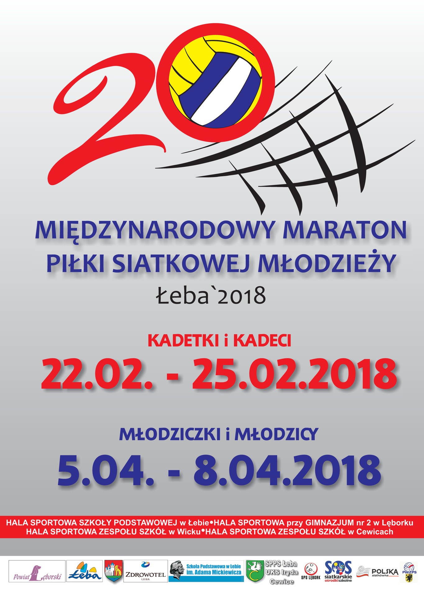 Jubileuszowy, dwudziesty turniej piłki siatkowej odbędzie się w Łebie w dniach 22-25.02.2018 r. W tegorocznej edycji swój udział zapowiedziały zespoły z Rosji, Włoch, Słowacji, Norwegii, Portugalii, a także wiele zespołów z całej Polski, m.in. z Warszawy, Olsztyna, Bartoszyc, Kędzierzyna Koźla, Jastrzębia, Nysy, Malborka, Pucka, Gdańska, Moniek, Dobrego Miasta, Bydgoszczy, Wołomina, Braniewa, Słupska, Starogardu Gdańskiego. Atrakcją Maratonu, podobnie jak w ubiegłym roku, będzie udział Reprezentacji Młodzieżowej Polski w kategorii kadet.