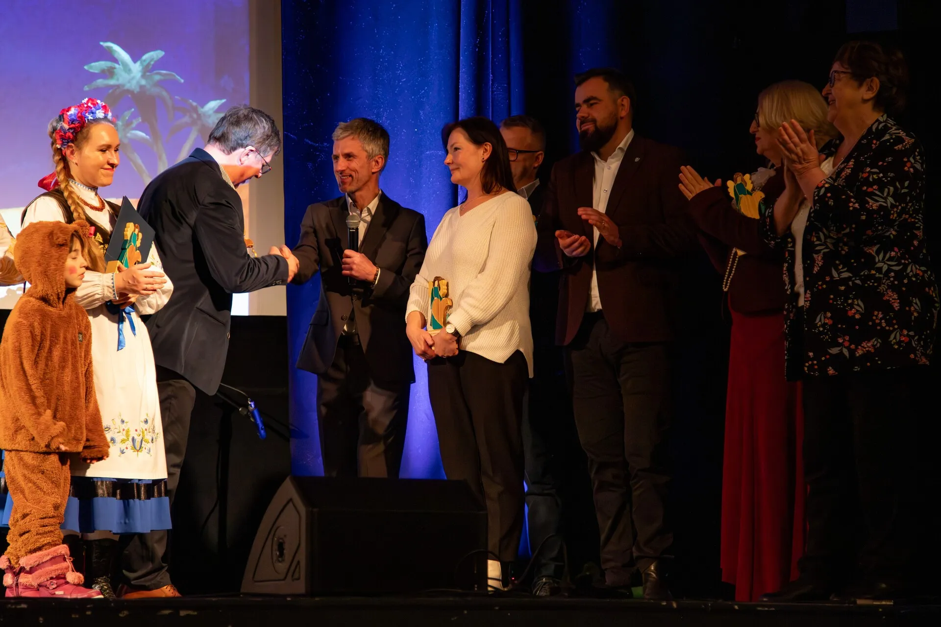 Unikatowe statuetki wykonane przez podopiecznych Środowiskowego Domu Samopomocy "Lwiątko" w Lęborku wręczyli: Tomasz Litwin - Starosta Lęborski, Sławomir Tutakowski - Sekretarz Miasta Lęborka, Ryszard Wenta - Prezes Lęborskiego Stowarzyszenia św. Jakuba Apostoła oraz Regina Szczupaczyńska. Przegląd poprowadziła dyrektor MDK w Lęborku Teresa Szczepańska.