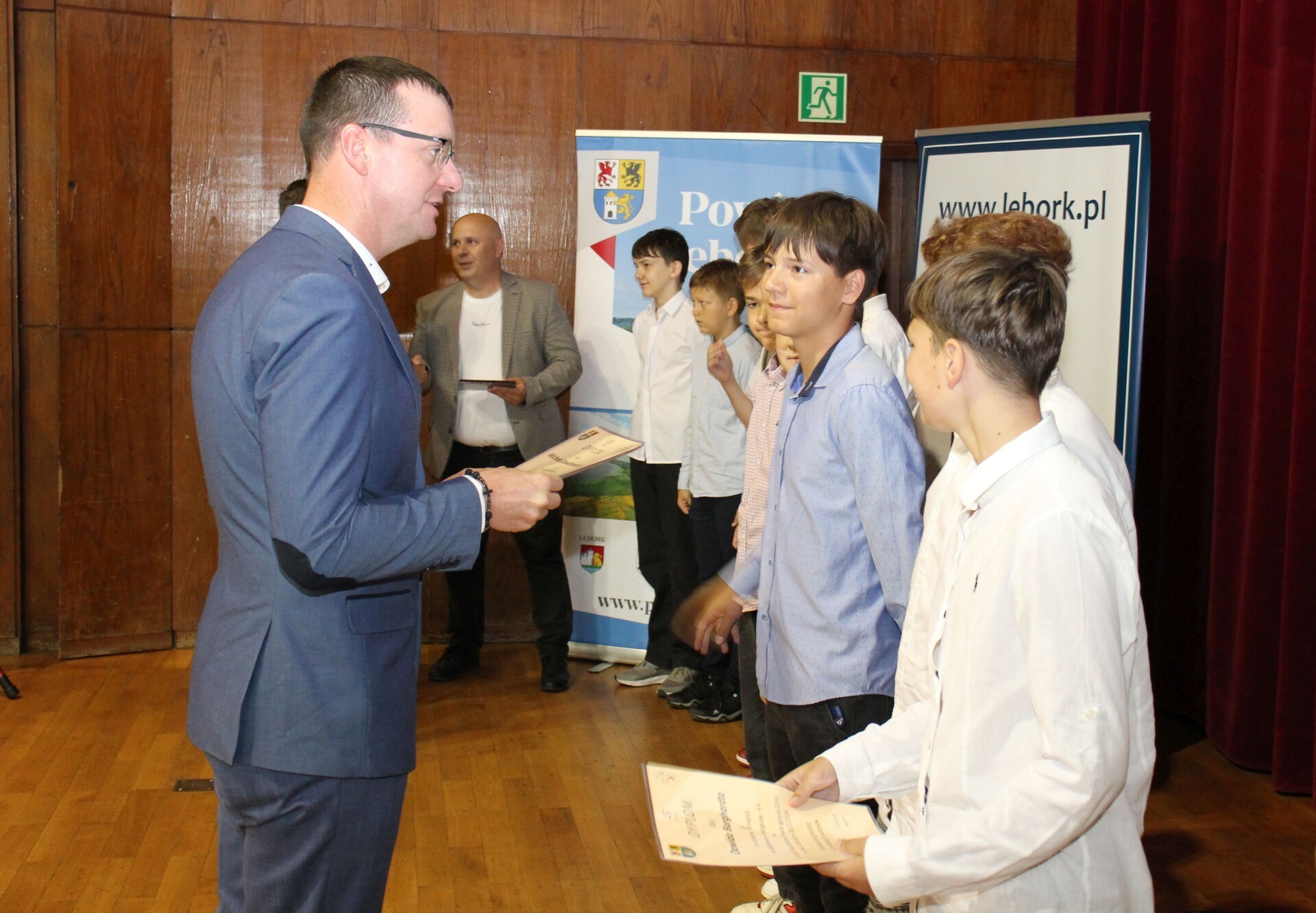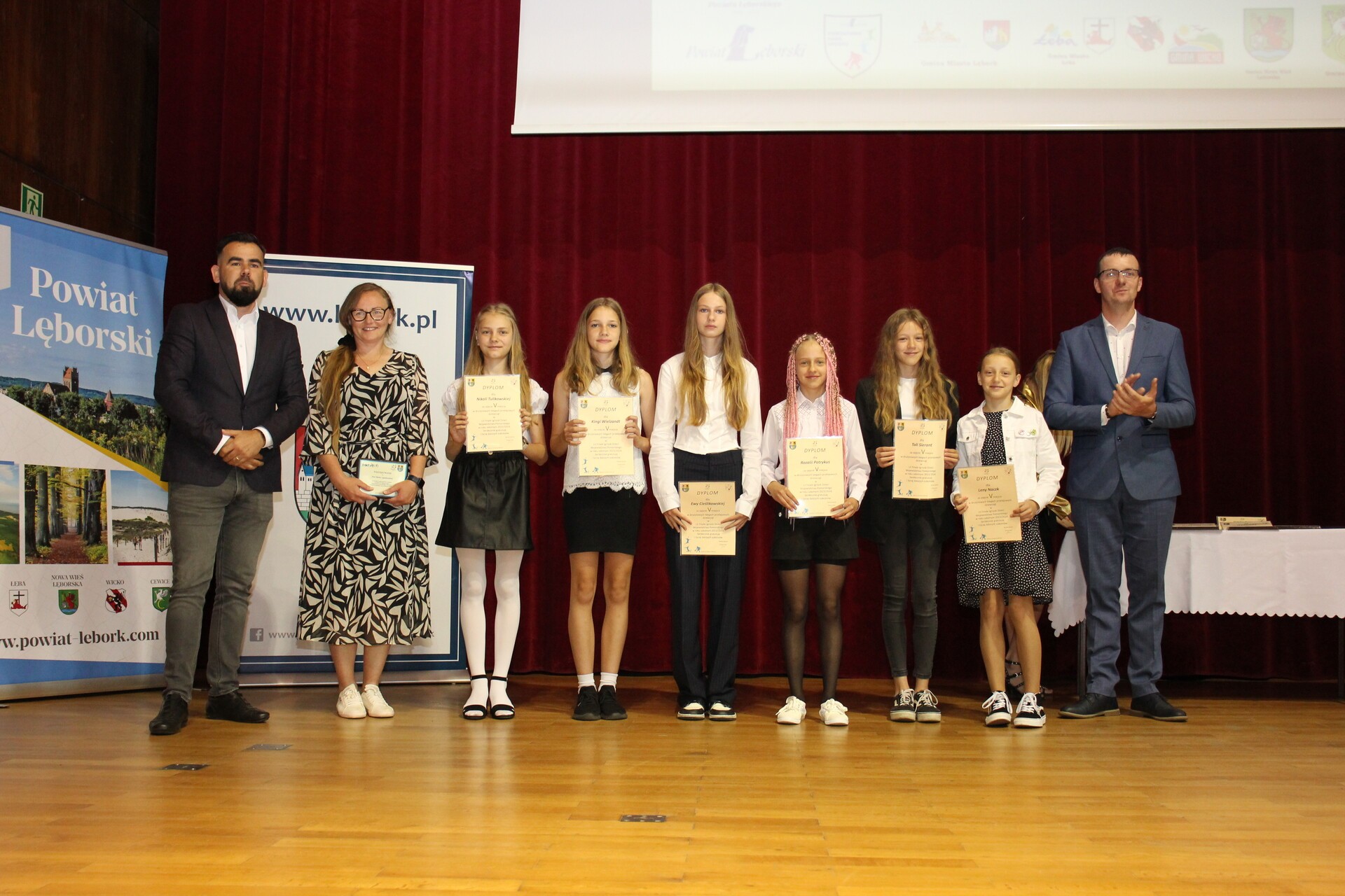 Dyplomy otrzymali także koordynatorzy Miejskich i Gminnych zawodów sportowych w ramach Powiatowych Igrzysk Dzieci, Igrzysk Młodzieży Szkolnej w roku szkolnym 2023/2024: Joanna Bieniek ( Gmina Miasto Łeba), Waldemar Juszczak (Gmina Wicko), Andrzej Czubaty (Gmina Nowa Wieś Lęborska), Paulina Mierzwa (Miasto Lębork) i Jarosław Pruski (Gmina Cewice).
