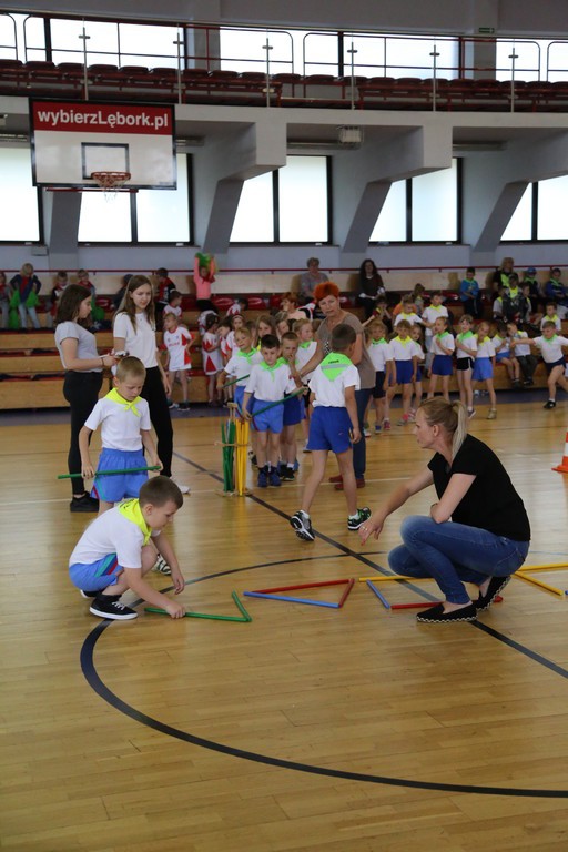 Dziś Miejską Halą Sportową w Lęborku rządziły przedszkolaki. W XXXII Igrzyskach Sportowo-Zabawowych Dzieci Przedszkolnych wzięły udział wszystkie lęborskie przedszkola. Każda z drużyn składała się z 20-tu zawodników (10 dziewcząt i 10 chłopców). Dzieci wzięły udział w 5 zabawach sportowych: „Sadzenie ziemniaków”, „Tor przeszkód”, ,,Tworzenie figur geometrycznych”, „Celowanie do okienka” oraz „Bieg z przechodzeniem przez hula hop”.