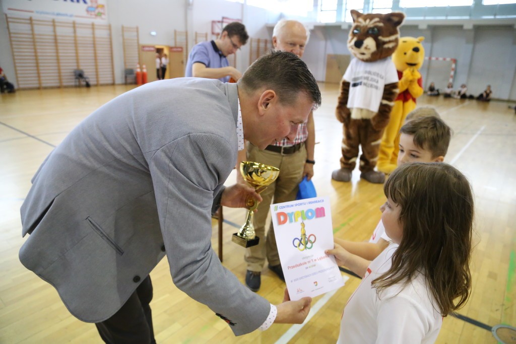 Na zakończenie igrzysk młodzi uczestnicy zawodów sportowych otrzymali z rąk zastępcy burmistrza Miasta Lęborka Mariana Kurzydło oraz dyrektora Centrum Sportu i Rekreacji – Mariana Borka pamiątkowe medale, a przedszkola – pamiątkowy dyplom i puchar.