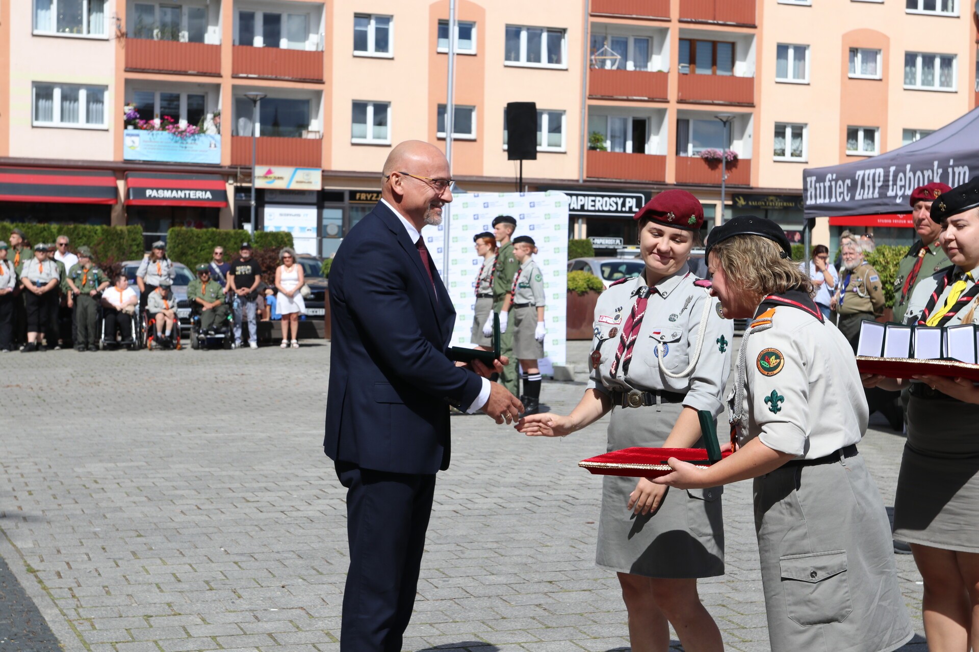 Hufiec ZHP Lębork im. Polskich Olimpijczyków obchodzi w tym roku 80-lecie działalności. W poniedziałek, 18 sierpnia 2025 r. na placu Pokoju odbył się uroczysty apel, podczas którego hufcowi nadany został nowy sztandar - symbol harcerskich wartości, tradycji i wspólnoty. To była też okazja do uhonorowania drużynowych harcerskich. Podczas uroczystości nagrody wręczył burmistrz miasta Jarosław Litwin.