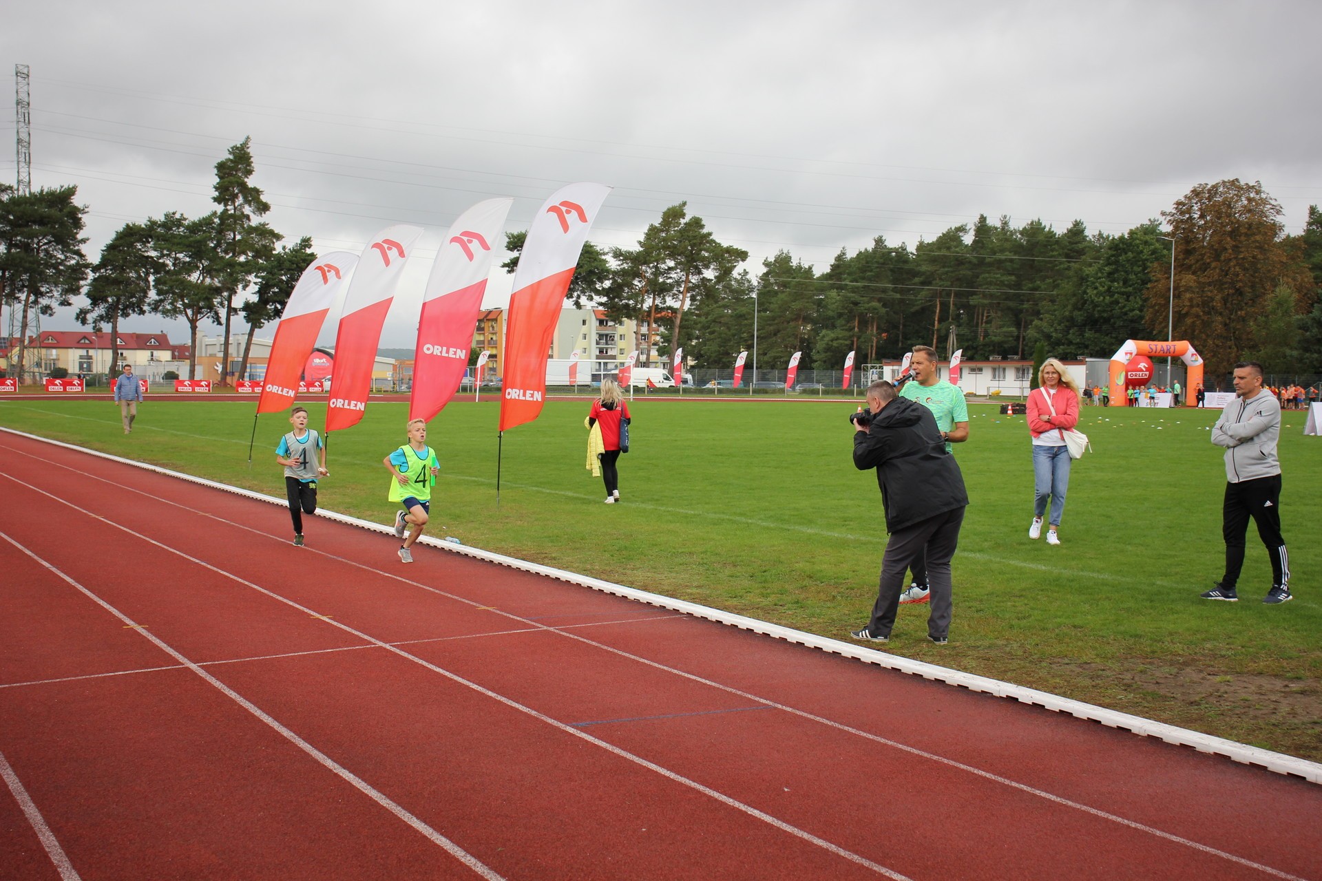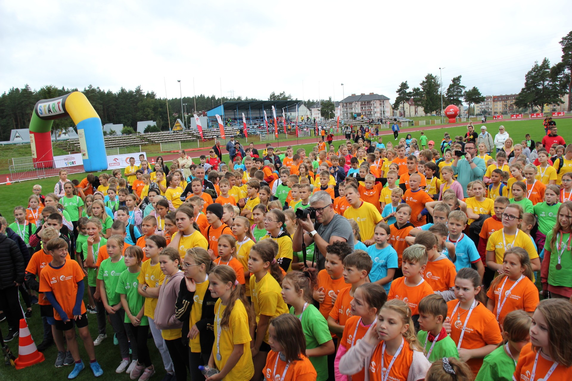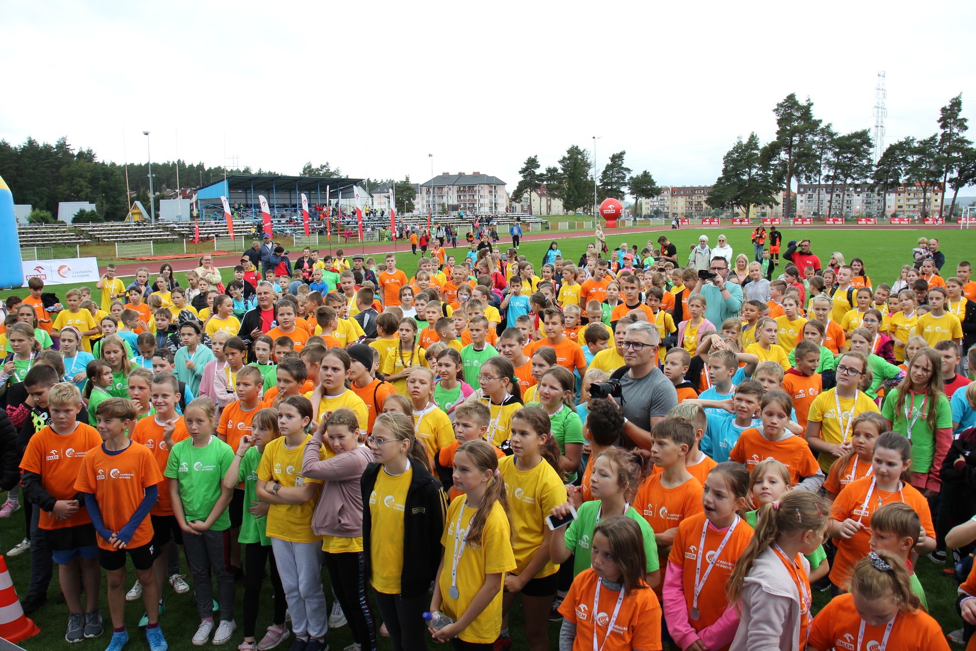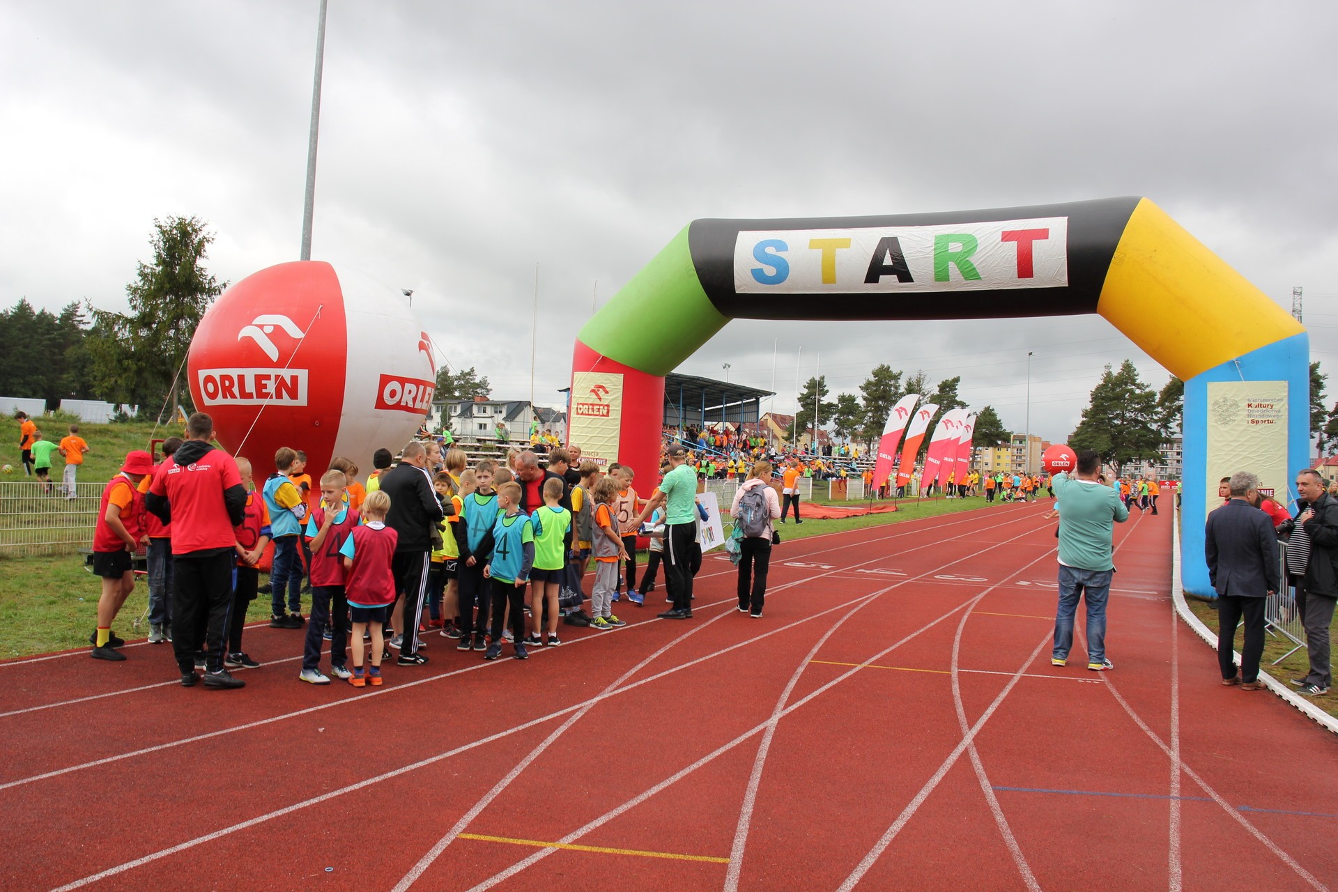 To było wielkie święto sportu i lekkoatletyki na lęborskim stadionie! We wtorek 14 września br. przed południem Lębork gościł dużą imprezę skierowaną do uczniów klas 4-6 szkół podstawowych pn. „ORLEN z podwórka na bieżnię”. Oprócz sportowej rywalizacji w wielu konkurencjach nie zabrakło gier, zabaw i występów artystycznych. Ambasadorami sportowego wydarzenia w Lęborku byli znani i popularni lekkoatleci: Sebastian Chmara i Paweł Januszewski. Obaj mistrzowie poprowadzili imprezę będąc przy tym często proszeni o autografy czy o zrobienie wspólnego zdjęcia. Każdy uczeń, uczestnik zabawy otrzymał okolicznościową koszulkę i medal. W sportowej imprezie wzięło udział 11 szkół: szkoły podstawowe nr 1, 3, 4, 5, 7 i 8 z Lęborka, Społeczna Językowa Szkoła Podstawowa z Lęborka oraz szkoły podstawowe z Garczegorza, Leśnic, Nożyna i Rokit.
