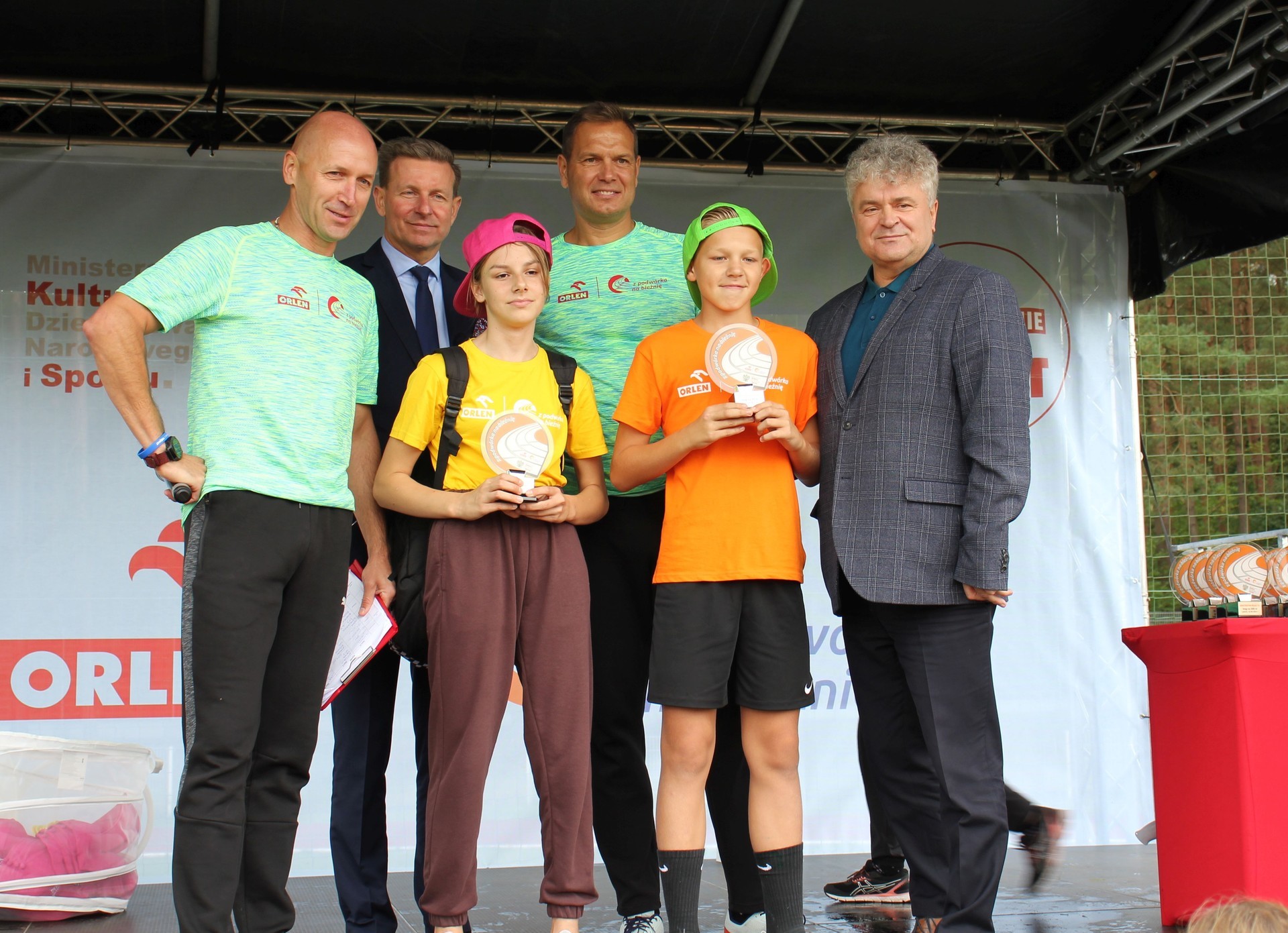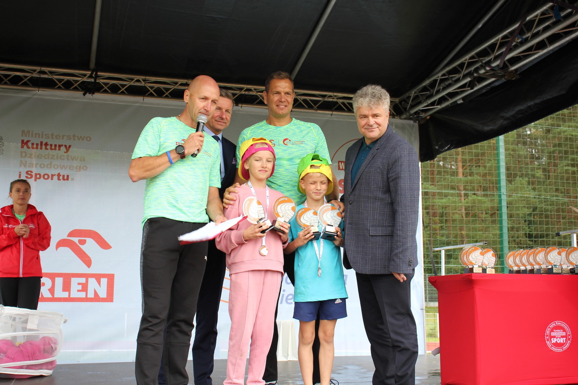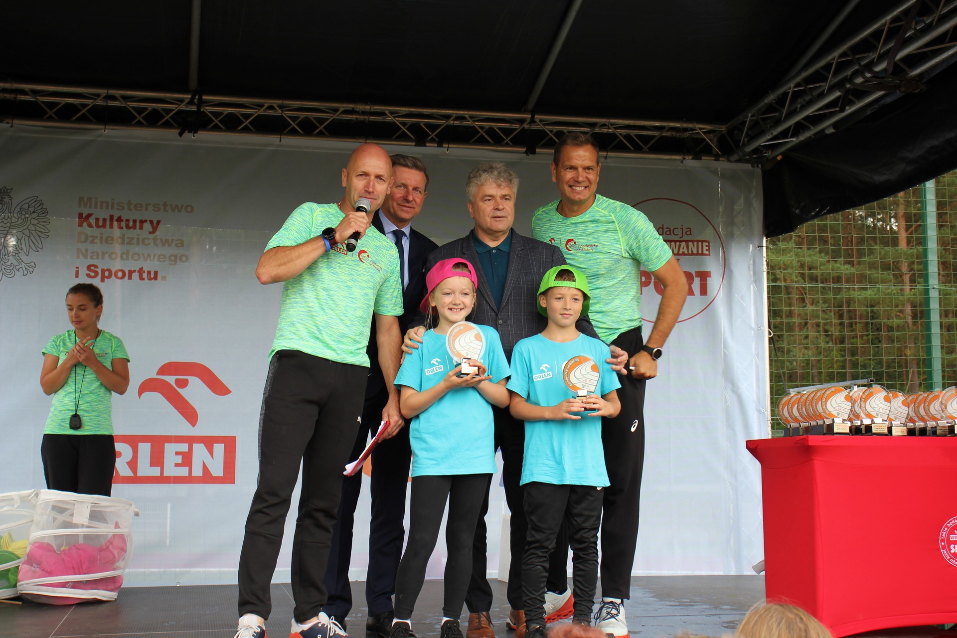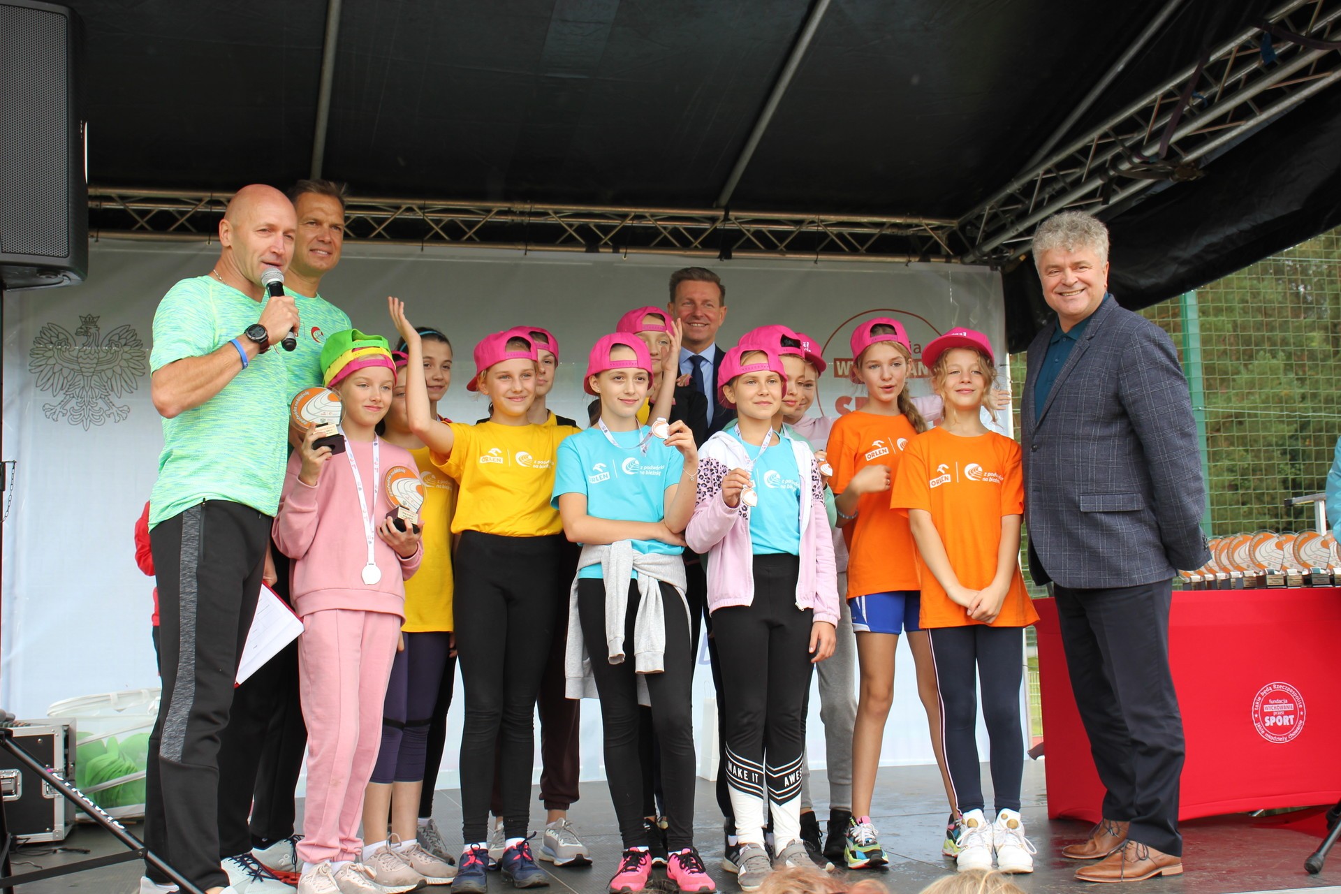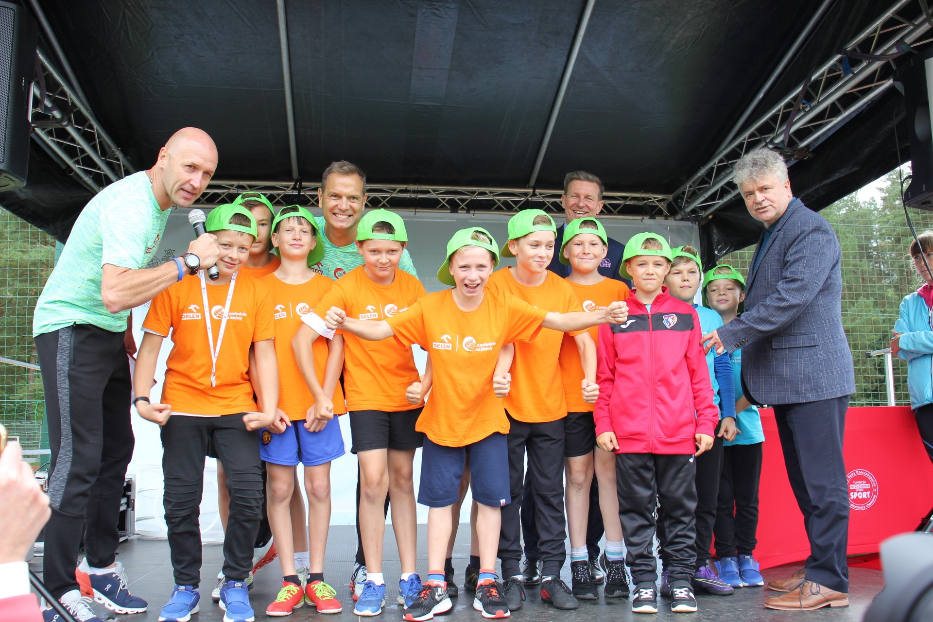 To było wielkie święto sportu i lekkoatletyki na lęborskim stadionie! We wtorek 14 września br. przed południem Lębork gościł dużą imprezę skierowaną do uczniów klas 4-6 szkół podstawowych pn. „ORLEN z podwórka na bieżnię”. Oprócz sportowej rywalizacji w wielu konkurencjach nie zabrakło gier, zabaw i występów artystycznych. Ambasadorami sportowego wydarzenia w Lęborku byli znani i popularni lekkoatleci: Sebastian Chmara i Paweł Januszewski. Obaj mistrzowie poprowadzili imprezę będąc przy tym często proszeni o autografy czy o zrobienie wspólnego zdjęcia. Każdy uczeń, uczestnik zabawy otrzymał okolicznościową koszulkę i medal. W sportowej imprezie wzięło udział 11 szkół: szkoły podstawowe nr 1, 3, 4, 5, 7 i 8 z Lęborka, Społeczna Językowa Szkoła Podstawowa z Lęborka oraz szkoły podstawowe z Garczegorza, Leśnic, Nożyna i Rokit.