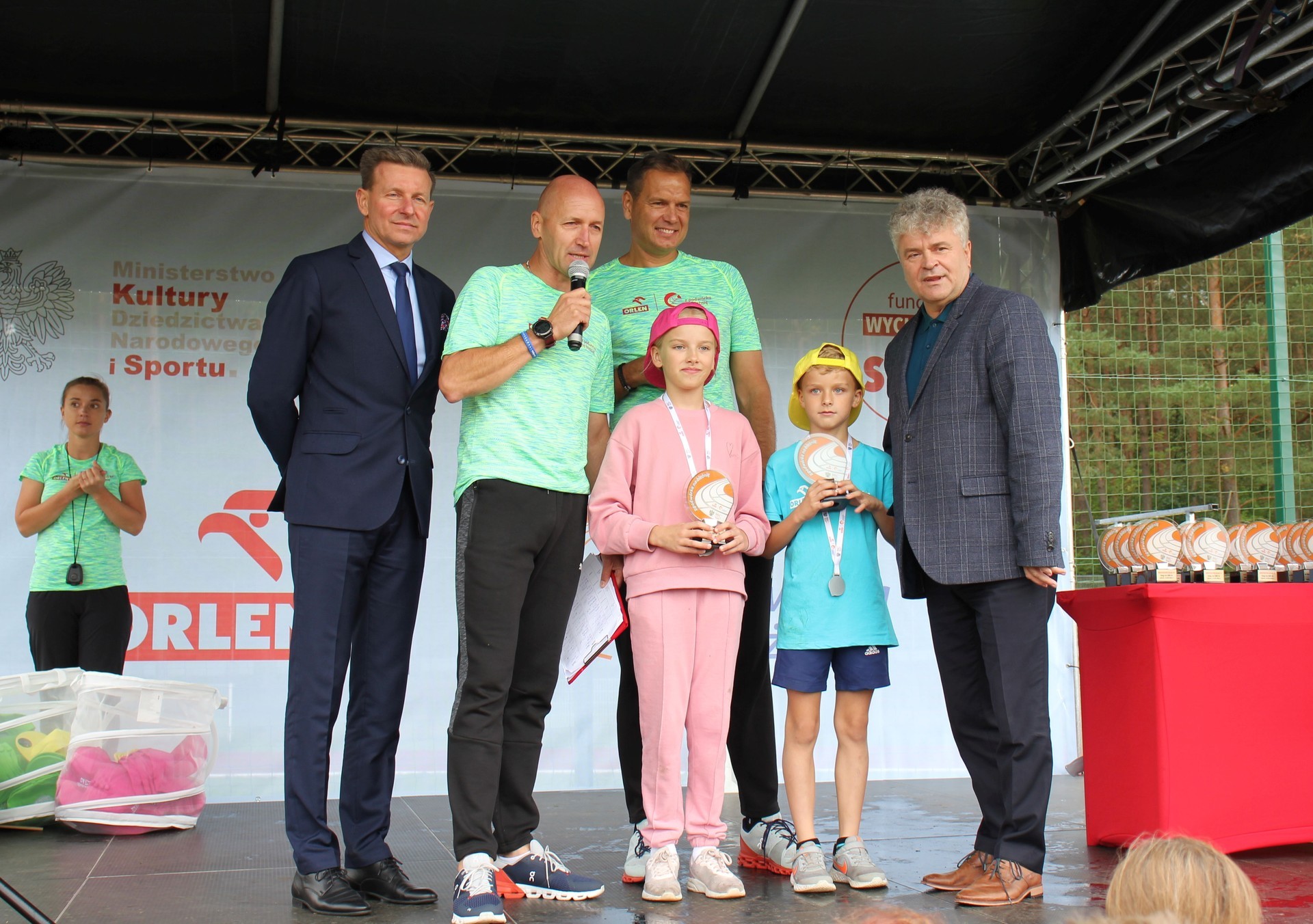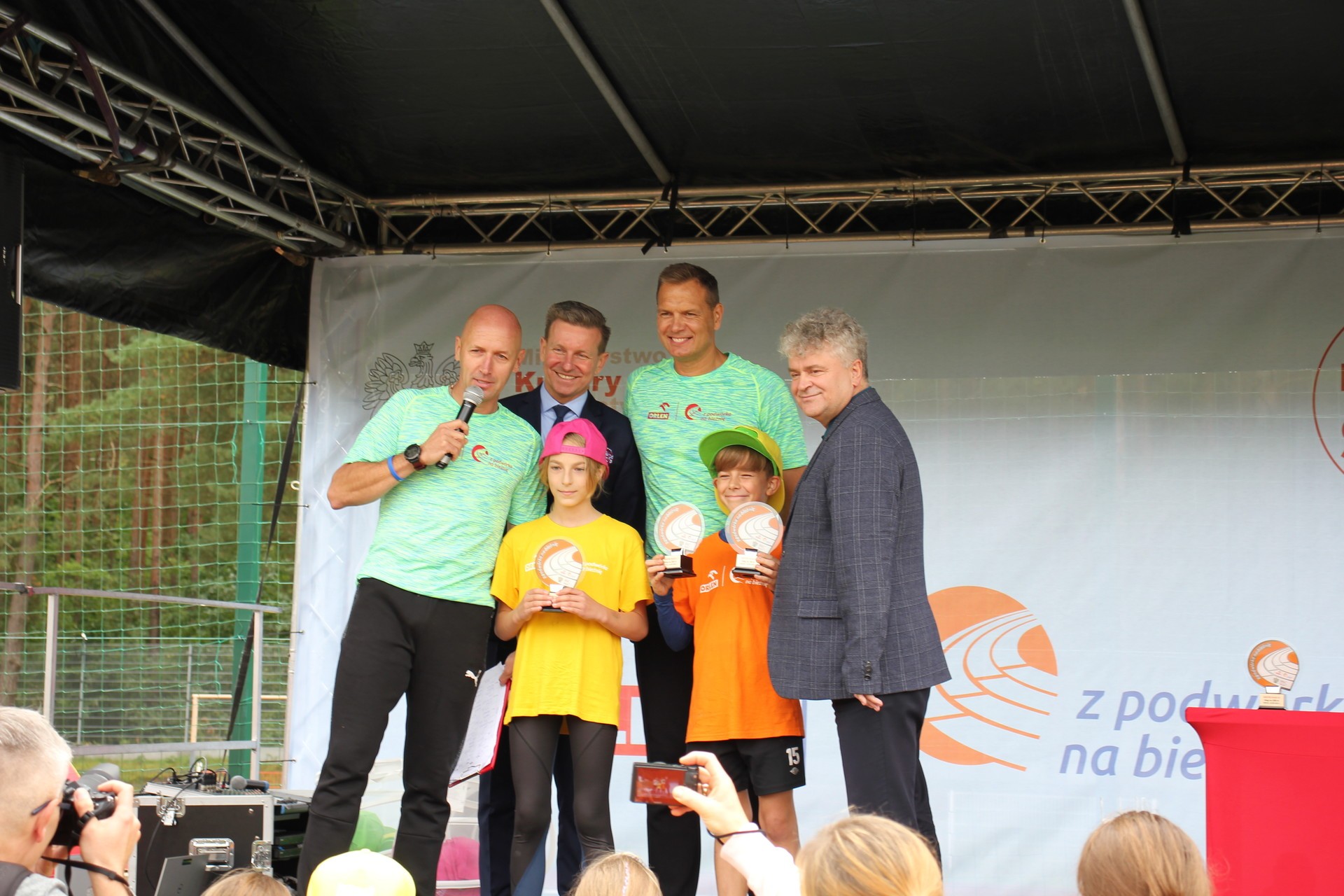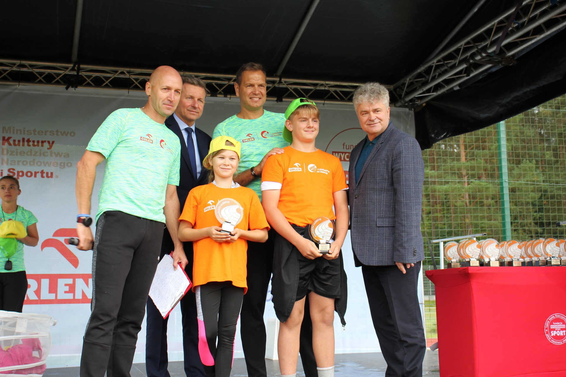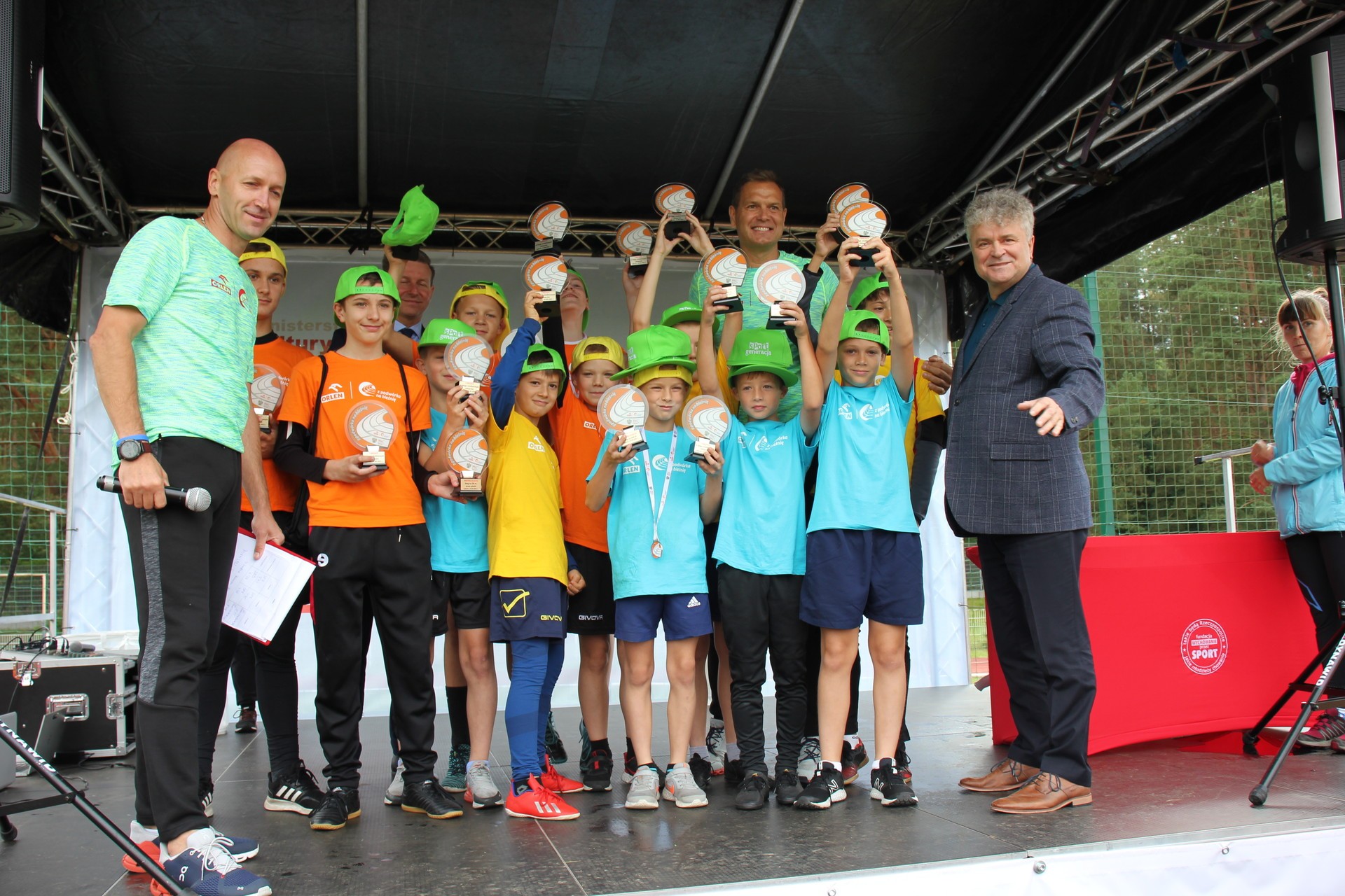 To było wielkie święto sportu i lekkoatletyki na lęborskim stadionie! We wtorek 14 września br. przed południem Lębork gościł dużą imprezę skierowaną do uczniów klas 4-6 szkół podstawowych pn. „ORLEN z podwórka na bieżnię”. Oprócz sportowej rywalizacji w wielu konkurencjach nie zabrakło gier, zabaw i występów artystycznych. Ambasadorami sportowego wydarzenia w Lęborku byli znani i popularni lekkoatleci: Sebastian Chmara i Paweł Januszewski. Obaj mistrzowie poprowadzili imprezę będąc przy tym często proszeni o autografy czy o zrobienie wspólnego zdjęcia. Każdy uczeń, uczestnik zabawy otrzymał okolicznościową koszulkę i medal. W sportowej imprezie wzięło udział 11 szkół: szkoły podstawowe nr 1, 3, 4, 5, 7 i 8 z Lęborka, Społeczna Językowa Szkoła Podstawowa z Lęborka oraz szkoły podstawowe z Garczegorza, Leśnic, Nożyna i Rokit.