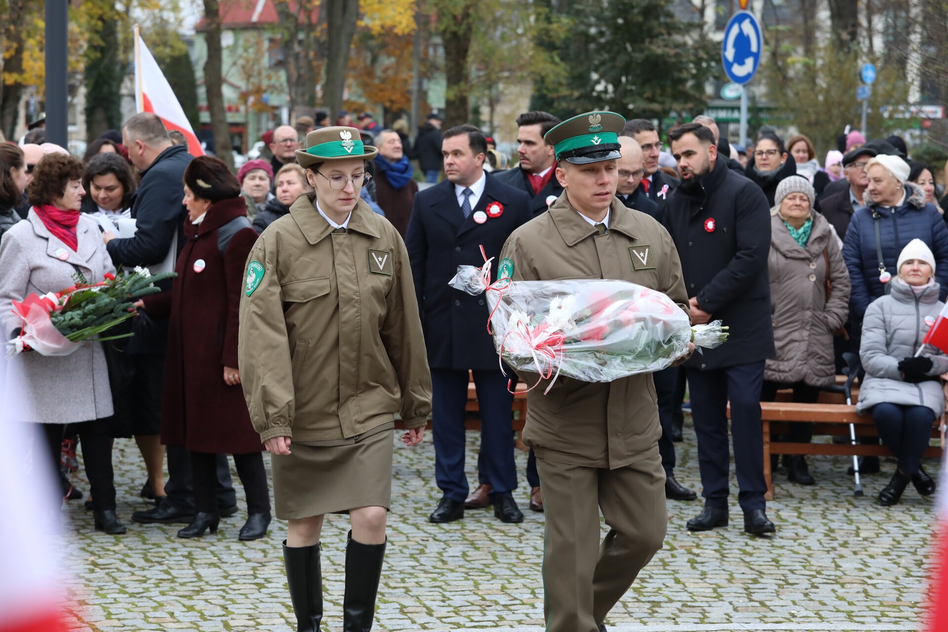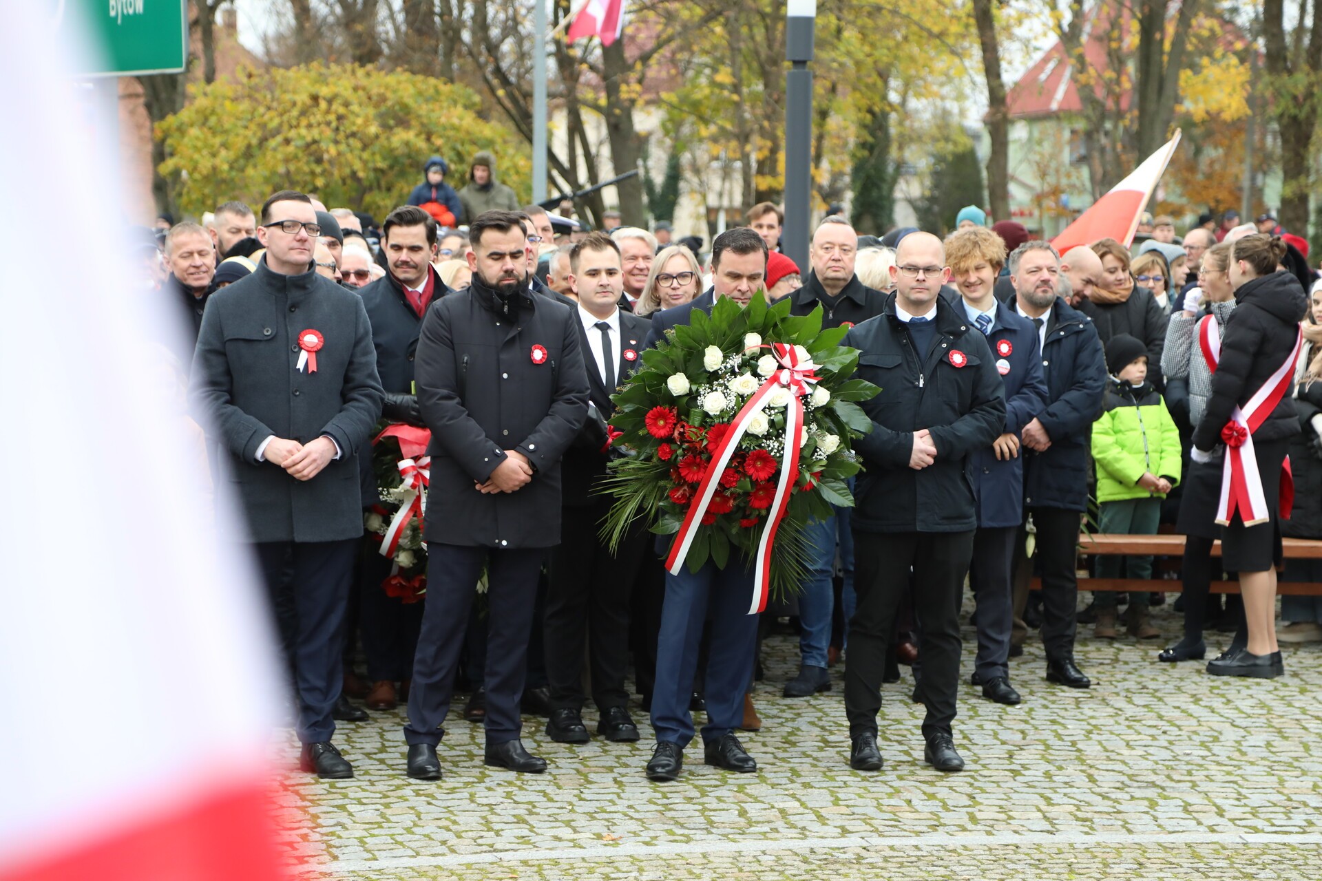 Następnie liczne delegacje, w tym władz samorządowych – starosta lęborski Tomasz Litwin, wicestarosta Adrian Wenta, burmistrz miasta Jarosław Litwin, zastępca burmistrza Krzysztof Król, przewodniczący Rady Powiatu Lęborskiego Mirosław Tandek, przewodniczący Rady Miejskiej Radosław Zimnowoda, służb mundurowych, organizacji politycznych i społecznych, urzędów, szkół, przedszkoli, kombatantów, harcerzy, złożyły kwiaty przy Obelisku Niepodległości. Kwiaty złożyli radna Sejmiku Województwa Pomorskiego Iwona Mielewczyk i w imieniu Minister Edukacji Jakub Herczyk.
