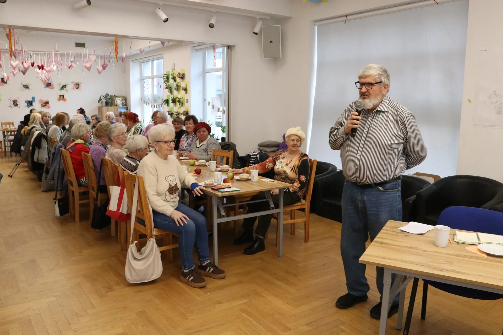 Spotkanie otworzyła prezes Ligi Kobiet Polskich Wanda Konieczna zapowiadając prelekcję historyka dr Bogdana Libicha o historii pocałunku. Wykład wzbudził wśród słuchaczek uśmiech i zaciekawienie, a momentami także lekkie rozbawienie.