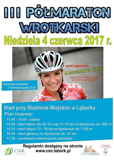 Już 4 czerwca br. w Lęborku zorganizowany zostanie III Półmaraton Wrotkarski. Start główny przeprowadzony będzie na dystansie 21 km. Zawody dla dzieci do lat 10 oraz 11-12 lat przeprowadzone zostaną na dystansie 600 m, a dla dzieci w wieku 13-16 lat – na dystansie 1150m.