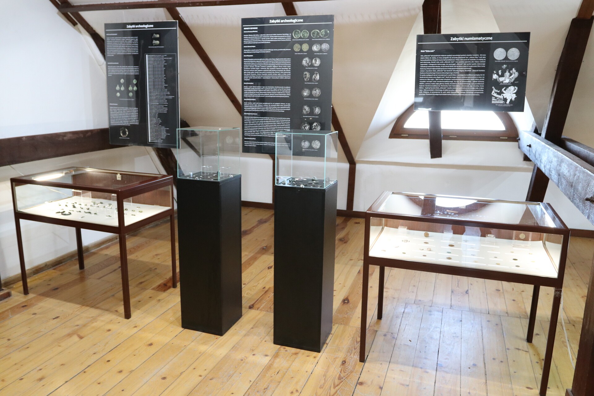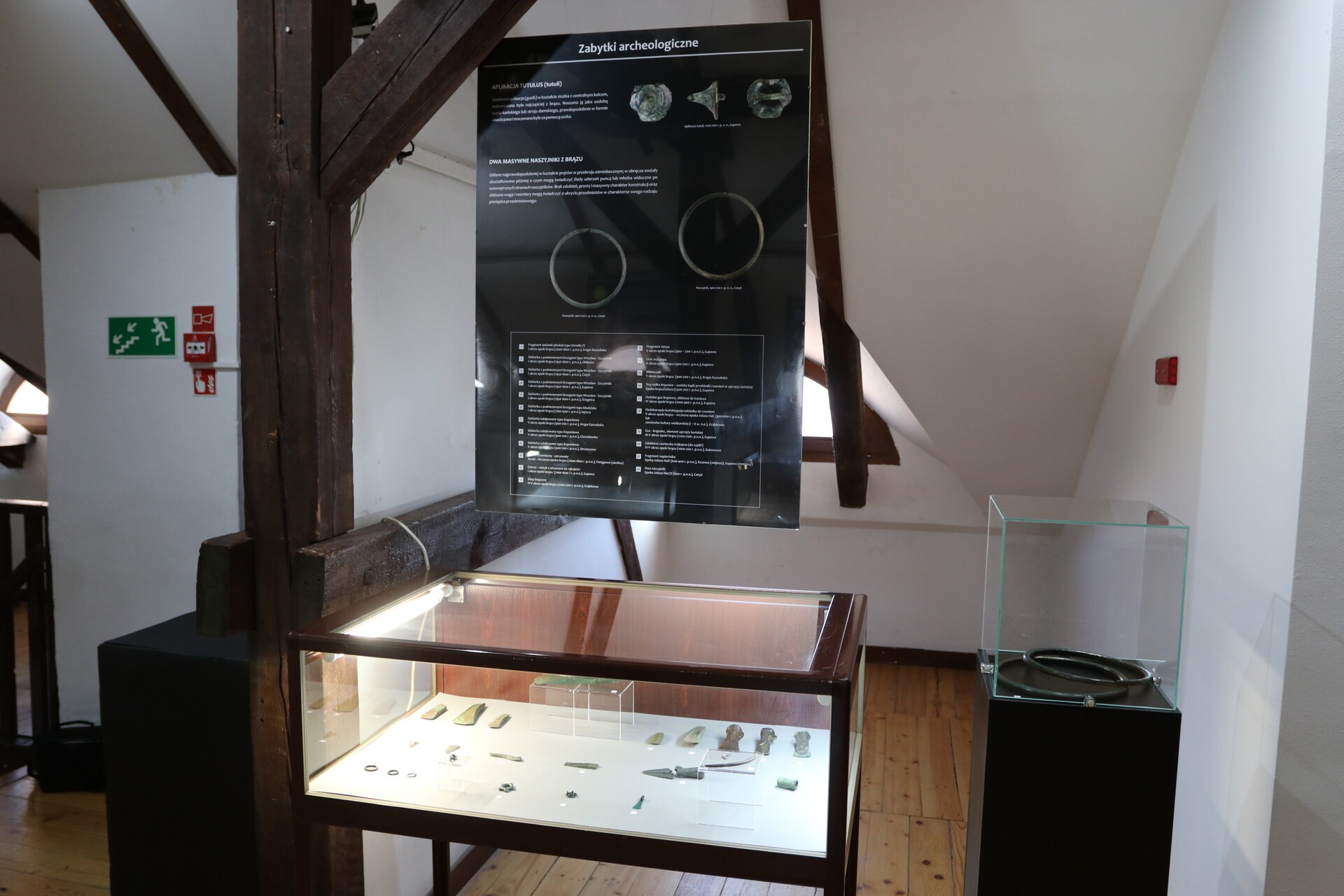 Na ekspozycji w Galerii „Strome Schody” w siedzibie głównej muzeum przy ul. Młynarskiej zobaczyć można zabytki archeologiczne, numizmatyczne oraz historyczne, z różnych przedziałów dziejowych, od najstarszych – archeologicznych po przedmioty, których pochodzenie datuje się na I połowę XX wieku. Zabytki zostały podzielone chronologicznie i tematycznie. Najliczniejszą grupę przedmiotów stanowią różnego rodzaju ozdoby i narzędzia. Najciekawszym zbiorem jest zbiór monet rzymskich, bitych w latach 69 – 211 n.e. Monety rzymskie są niezwykle rzadkim znaleziskiem na prowadzonych stacjonarnych badaniach archeologicznych, stąd wynika unikatowość tych numizmatów. Innym dużym zbiorem jest zbiór plomb towarowych, znanych od początku cywilizacji. Jedną z ważniejszych funkcji plomby było zabezpieczenie przesyłki. Także jedną z największych kolekcji na wystawie jest zbiór różnorodnych form guzików.