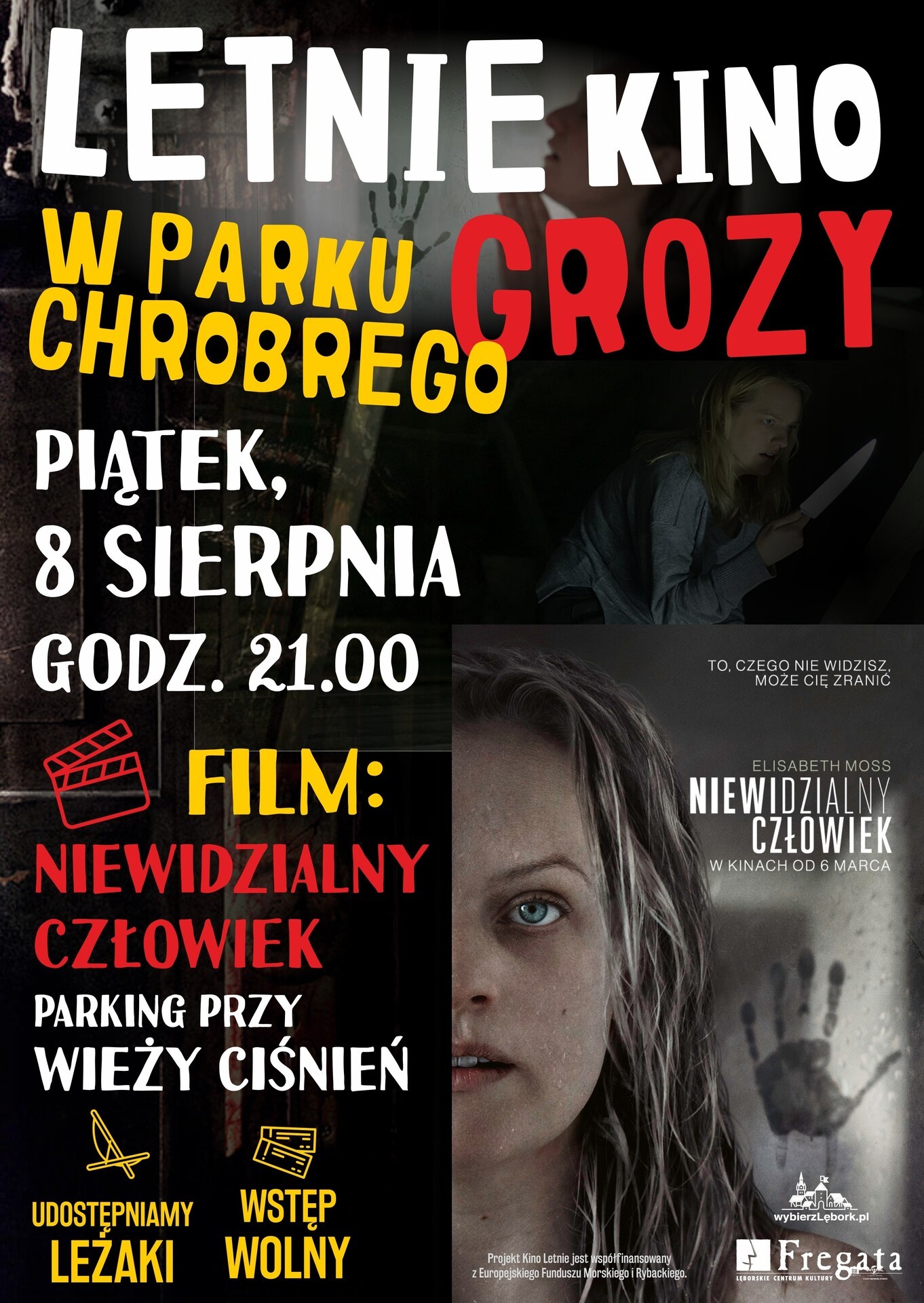 Po raz pierwszy kino plenerowe zawita do parku Chrobrego. Już w piątek, 8 sierpnia 2025 r. Lęborskie Centrum Kultury "Fregata" zaprasza na specjalny pokaz horroru pt. "Niewidzialny człowiek" w wyjątkowej scenerii na parkingu przy Wieży Ciśnień. Początek o godzinie 21. Wstęp wolny. Dla pierwszych 150 osób udostępniamy leżaki.