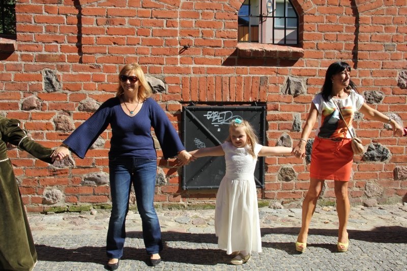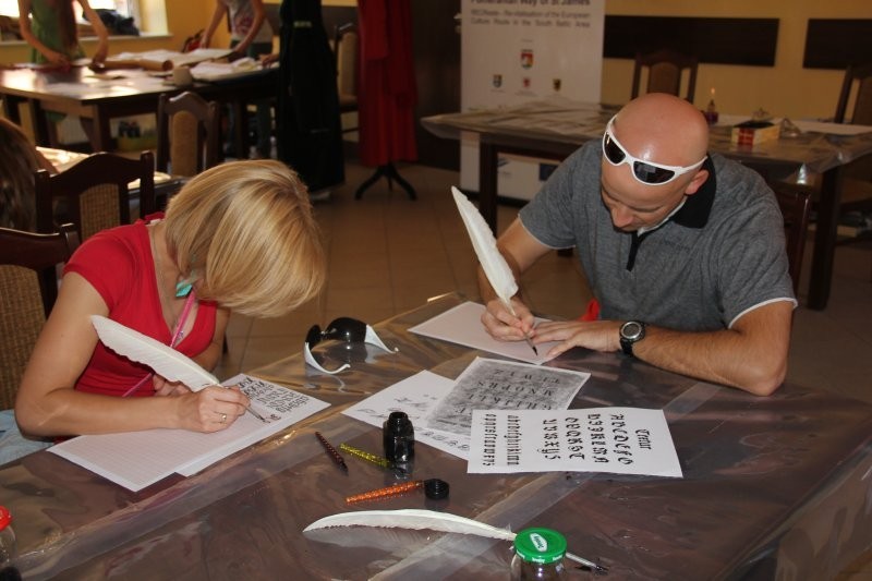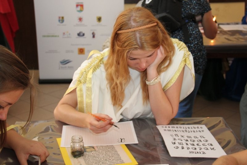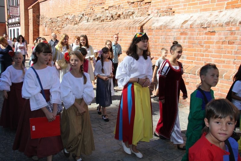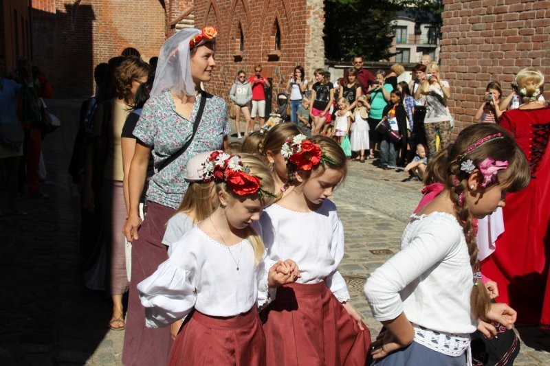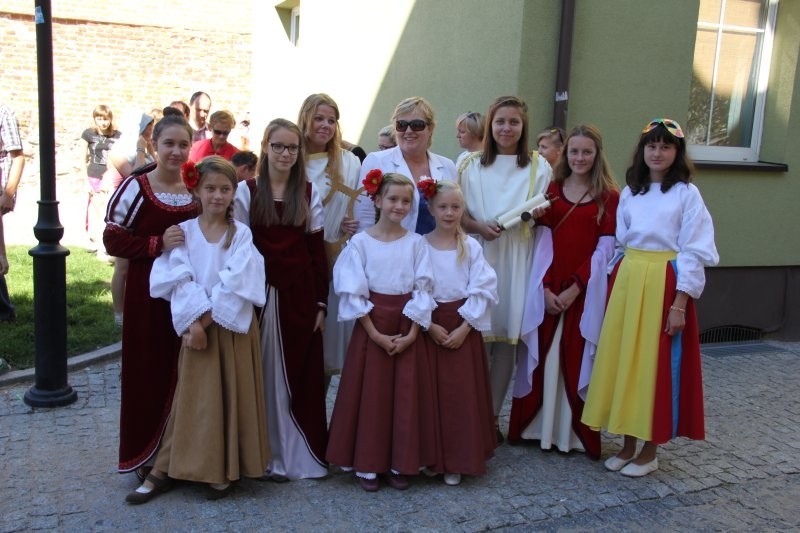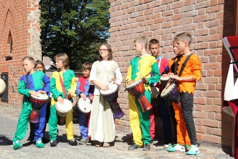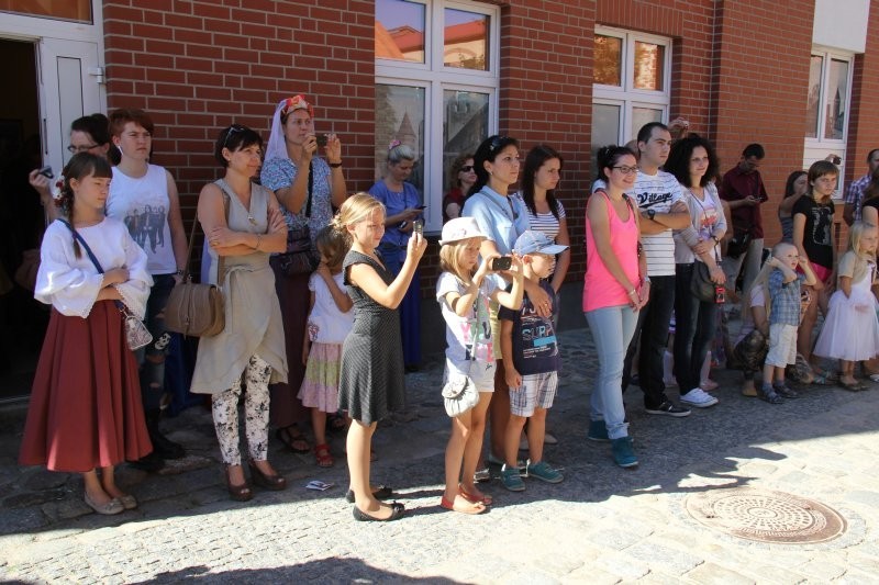 Korowód z bębniarzami, akrobatami wyruszył o godz. 11 z rogu ulicy Staromiejskiej i Skłodowskiej. Po drodze barwna kawalkada odwiedziła rycerzy w baszcie nr 32, gdzie można było poznać tajniki średniowiecznego życia. Taneczne warsztaty odbyły się przed przeszkloną basztą nr 24, udostępnioną zresztą do zwiedzania. Dopisała pogoda i uczestnicy. Zebrani uczyli się tańczyć Pavanę i Branle. Zespół muzyki Dawnej INCANTARE zaprezentował swój nowy instrument muzyczny fidelę basową. Wystąpiła także grupa bębniarzy SLAP prowadzona przez Piotra Fugiela. Kolejną atrakcją były warsztaty pisania „Ze starego kałamarza” oraz pieczętowanie lakiem. Aula im. Jana Pawła II w domu parafialnym kościoła św. Jakuba Ap. przez ponad godzinę zamieniła w centrum dawnego piśmiennictwa.