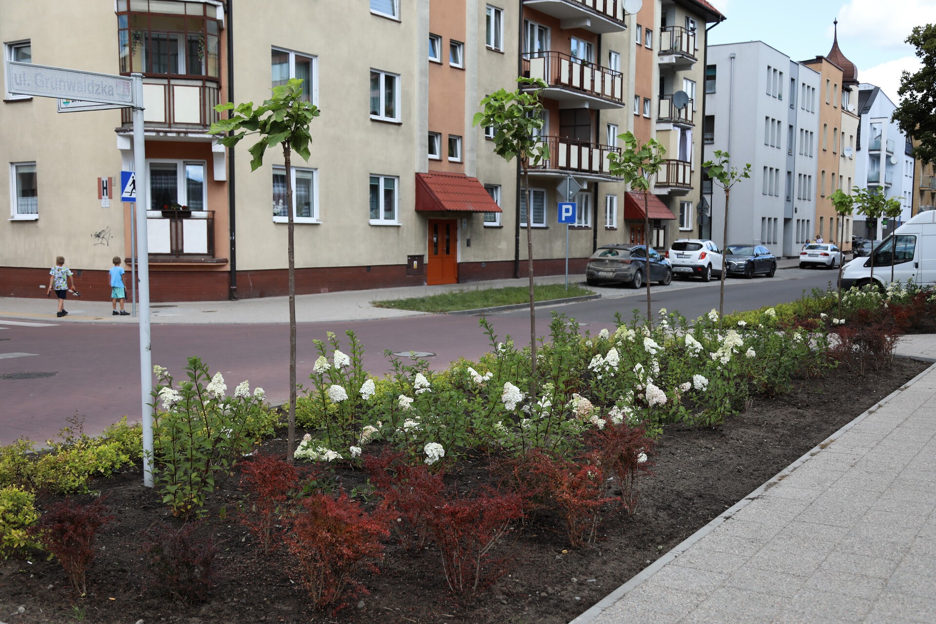 Rozjeżdżone przez samochody trawniki w centrum miasta znowu cieszą oko mieszkańców. W ramach działań związanych z renowacją zieleni miejskiej posadzono nowe rośliny – katalpy, tawuły i efektowne hortensje – przy ul. Grunwaldzkiej (skrzyżowanie z ul. rtm. Witolda Pileckiego) oraz przy ul. Zwycięstwa.
