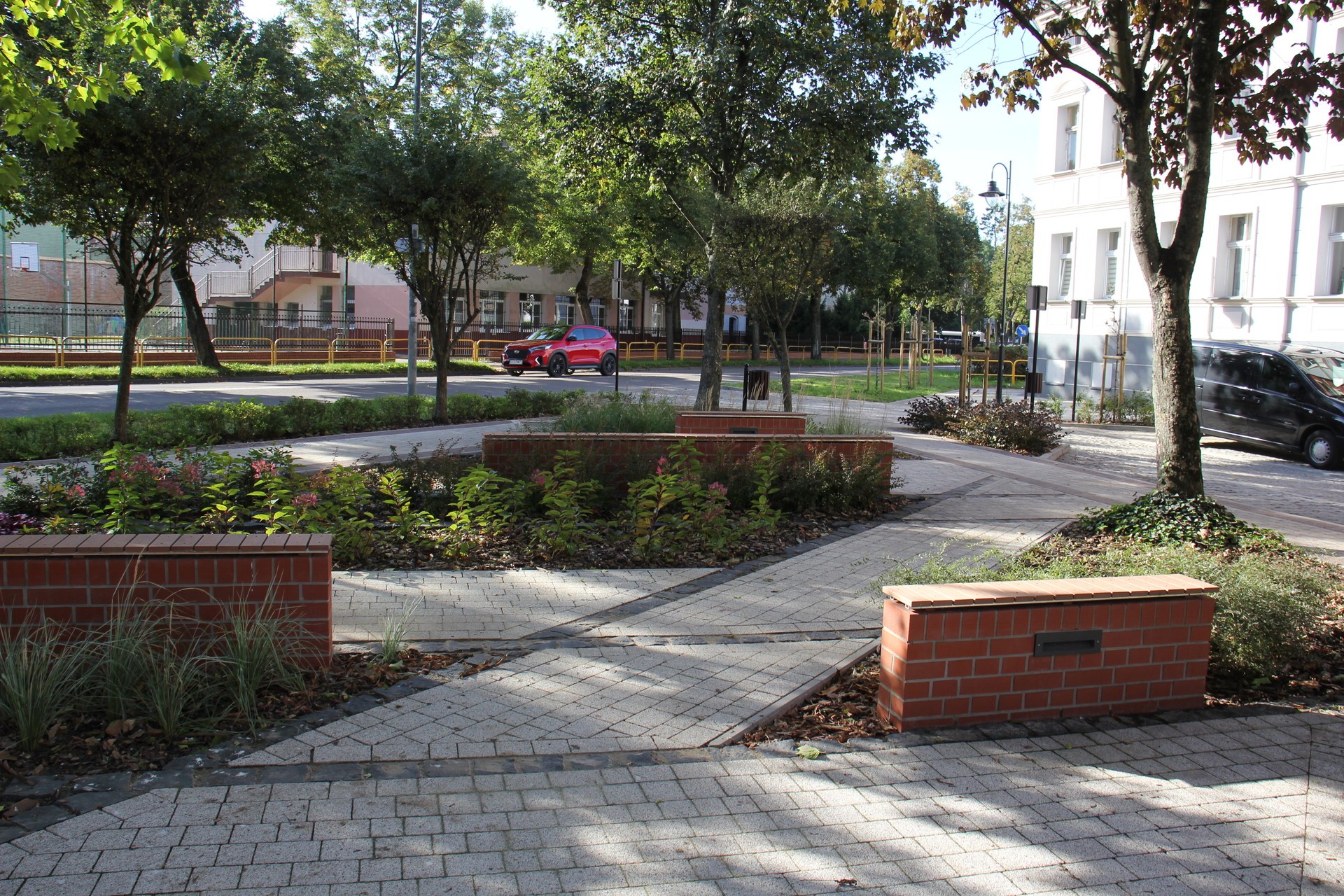 Wzdłuż ulicy w kilku miejscach pojawiły się zatoki do parkowania, a od strony ulicy Stryjewskiego nowe przejście dla pieszych. Kolejne przejście wybudowano przy budynku szkoły, tzw. „małej czwórki”. Cały teren Placu Kopernika został oświetlony stylowymi lampami. Efektowne podświetlenie mają także ławki z drewnianymi siedziskami zaaranżowane na ceglanych murkach. Ważnym elementem nowego Placu Kopernika jest atrakcyjna zieleń. Zasadzono tam 17 drzew oraz wiele krzewów, bylin i traw.