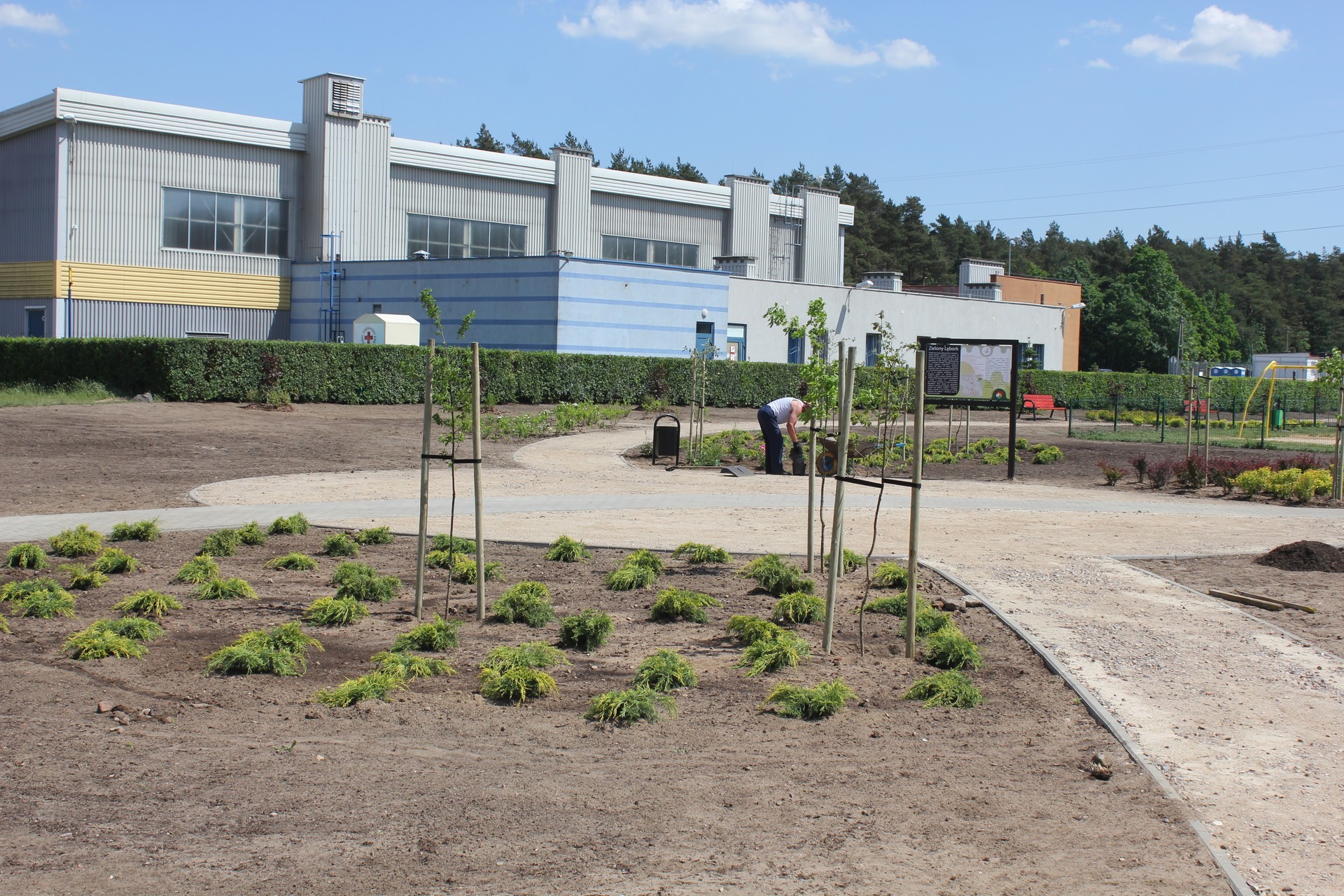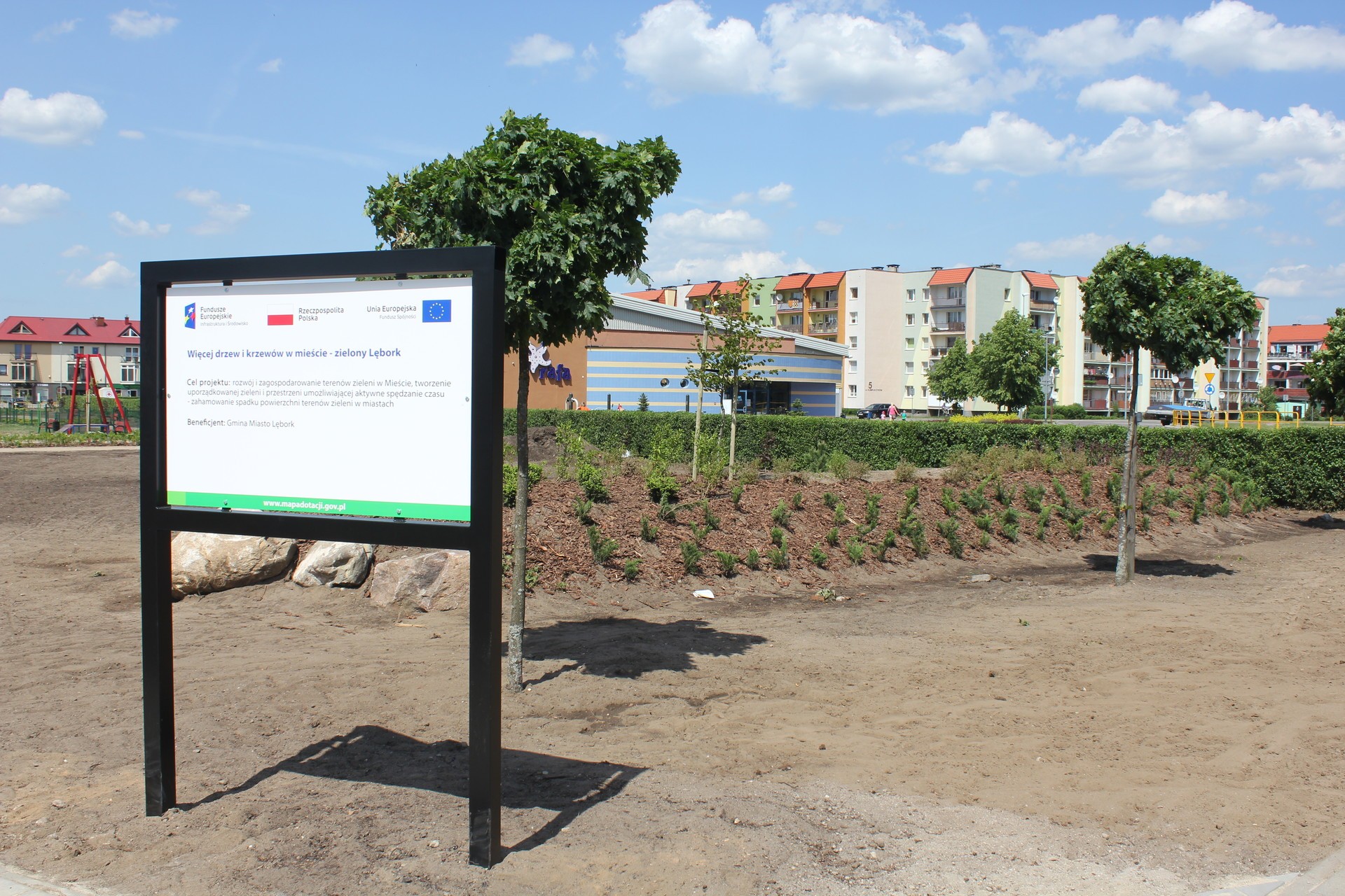 Wyspa atrakcyjnej zieleni z trasami spacerowymi i ławkami na ukończeniu. Na Osiedlu Sportowa przy Pływalni „RAFA” od wielu tygodni trwają prace w ramach projektu „Więcej drzew i krzewów – zielony Lębork”. Na rozległym terenie przy pływalni i niedawno rozbudowanym placu zabaw posadzono 82 drzewa, ok. 4000 krzewów, krzewinek i bylin oraz wytyczono i utwardzono betonową kostką lub żwirem alejki. W ramach aranżacji terenu zielonego wykonano kilka nasypów, a wokół nich na obszarze 4000 m2 zasiana zostanie trawa. Całość uzupełnia 10 ławek i 8 koszy na śmieci. Zakończenie prac w tym miejscu ma nastąpić w tym miesiącu.