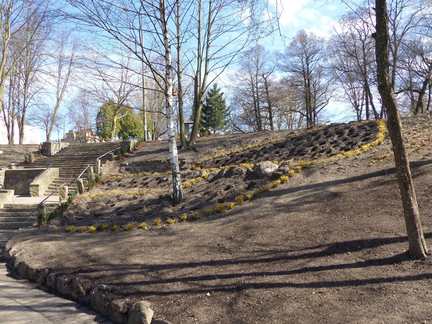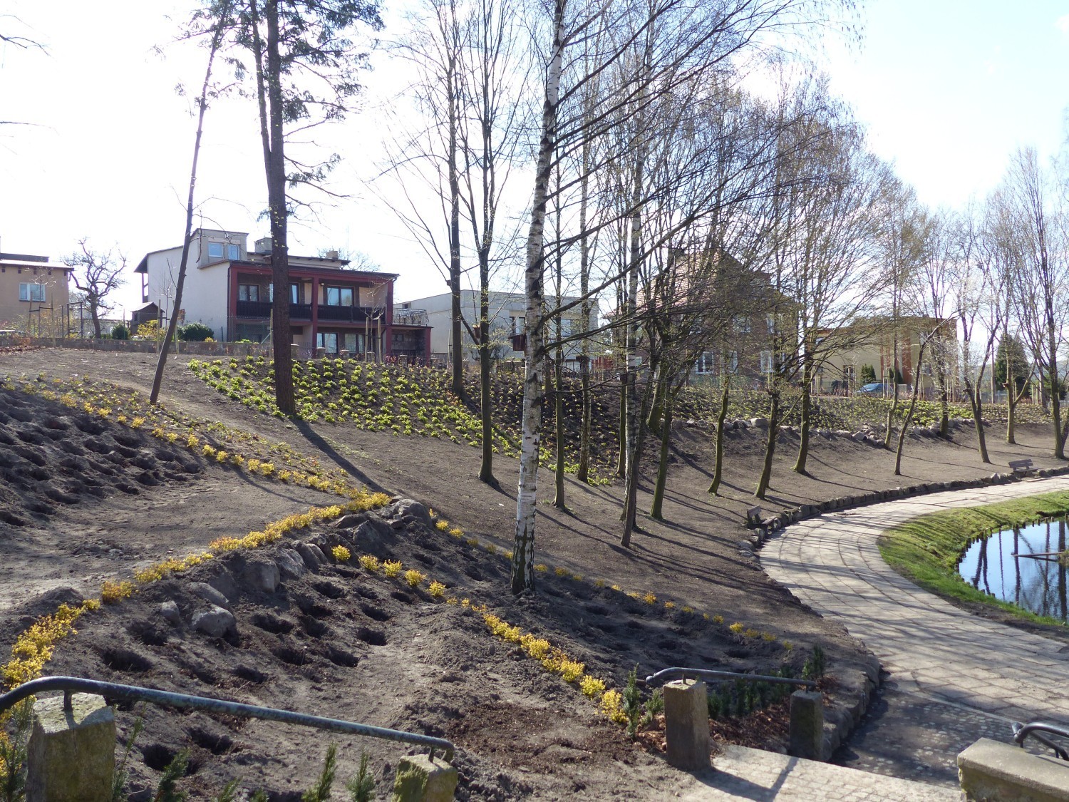 Zazieleniło się przy stawie w Parku Chrobrego. Wszystkie prace wykonano w ramach realizowanego od zeszłego roku w Lęborku projektu „Więcej drzew i krzewów – zielony Lębork”. Przy malowniczym stawie uporządkowano teren, nawieziono ziemię, wykonano tarasy na których zasadzono roślinność. Docelowo na tym obszarze zasadzonych zostanie 34 drzew liściastych, 13 iglastych oraz ponad trzy tysiące krzewów, krzewinek i bylin. Na drzewach zawisło 30 budek dla ptaków i 10 dla owadów. Pojawiły się także tabliczki z nazwami gatunkowymi roślin. Skarpy obsiane zostały trawą, pojawi się tam też łąka kwiatowa. Na montaż czeka 18 nowych ławek i koszy na śmieci. Wykonawcą prac w Parku Chrobrego była firma „Ogród Twoich Marzeń –Teresa Szpilewicz” z Kębłowa Nowowiejskiego.