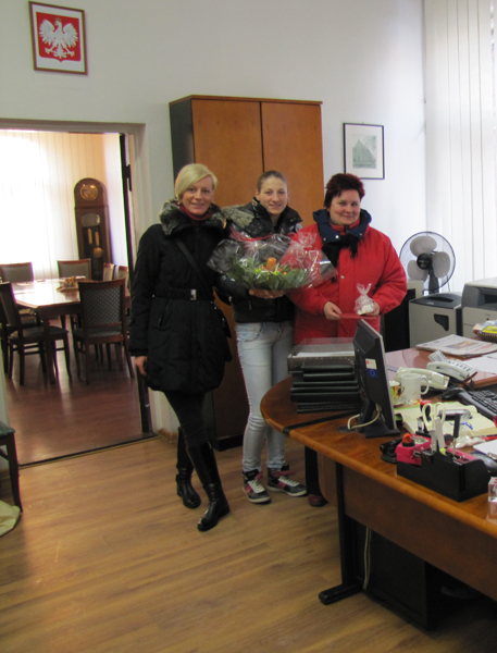 Jednakże plany pokrzyżował im siarczysty mróz. Dzieci wysłały więc delegację w osobach Pań wychowawczyń, które złożyły życzenia świąteczne dla wszystkich pracujących w ratuszu oraz mieszkańców miasta.
