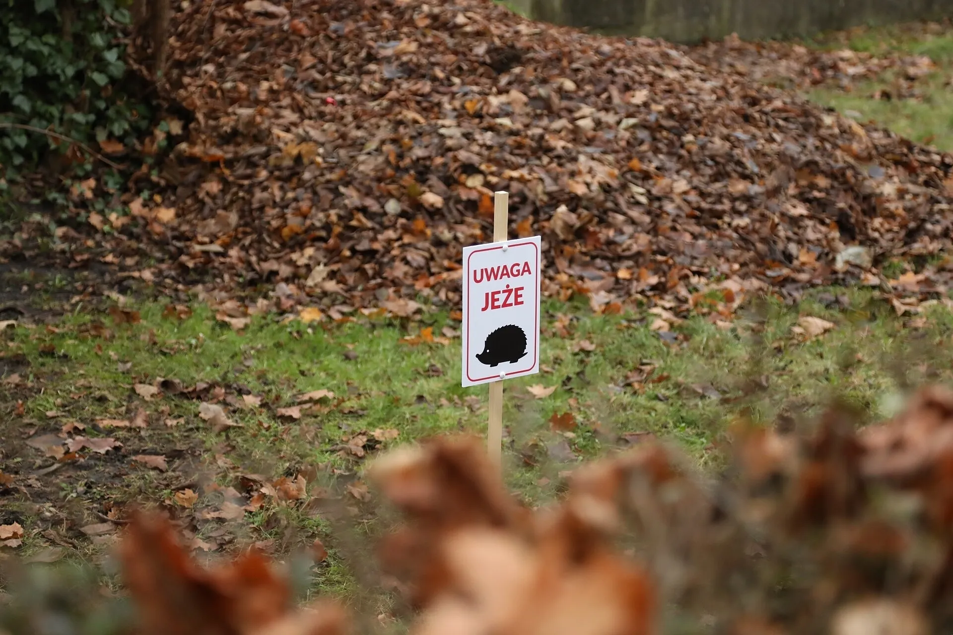 Zimujące jeże są bardzo wrażliwe. W celu ich ochrony apelujemy, aby podczas spacerów w parku trzymać psa na smyczy, szczególnie w pobliżu obszarów potencjalnego zimowania jeży w stertach liści i gałęzi. Pomoże to zapobiec przypadkowemu niepokojeniu lub nawet zranieniu jeża. Zwracajmy uwagę, aby pies nie kopał ani nie bawił się w takich miejscach.