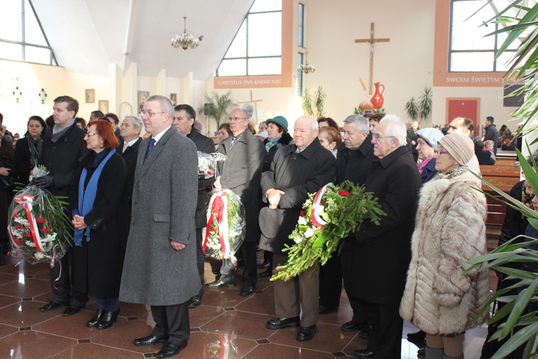 Po mszy, pod tablicą poświęconą pamięci żołnierzy-górników, którzy w okresie powojennym w ramach tzw. zastępczej służby wojskowej wcielani byli do batalionów pracy w kopalniach węgla kamiennego, rud uranu i kamieniołomach delegacje władz miejskich i powiatowych, organizacji, mieszkańcy i goście złożyli wiązanki kwiatów i zapalili znicze.