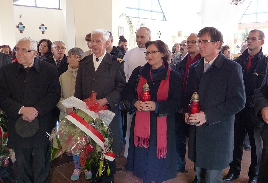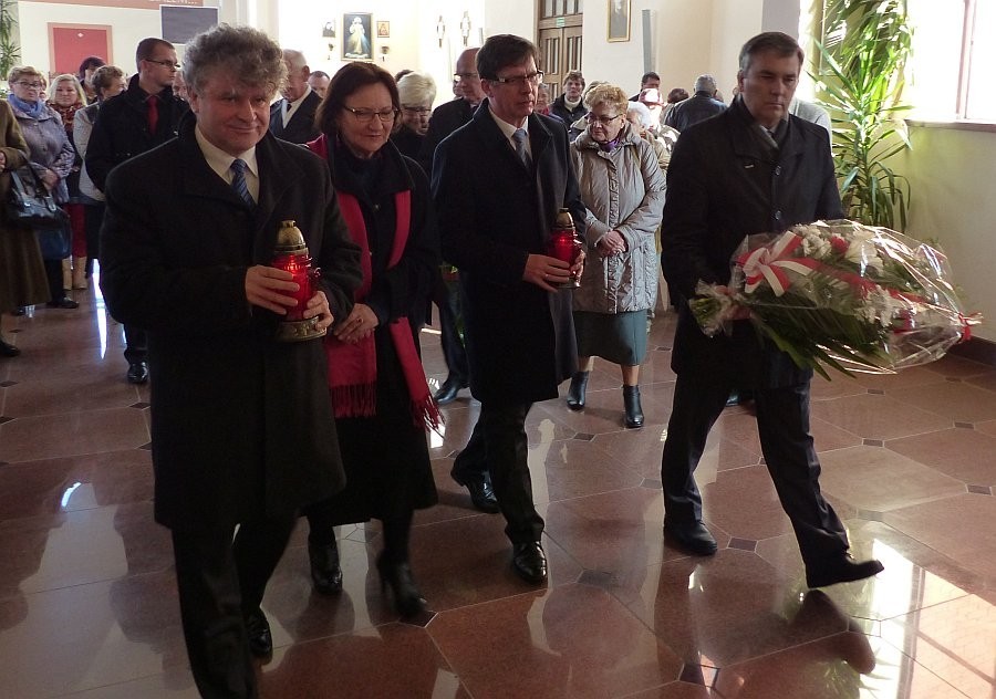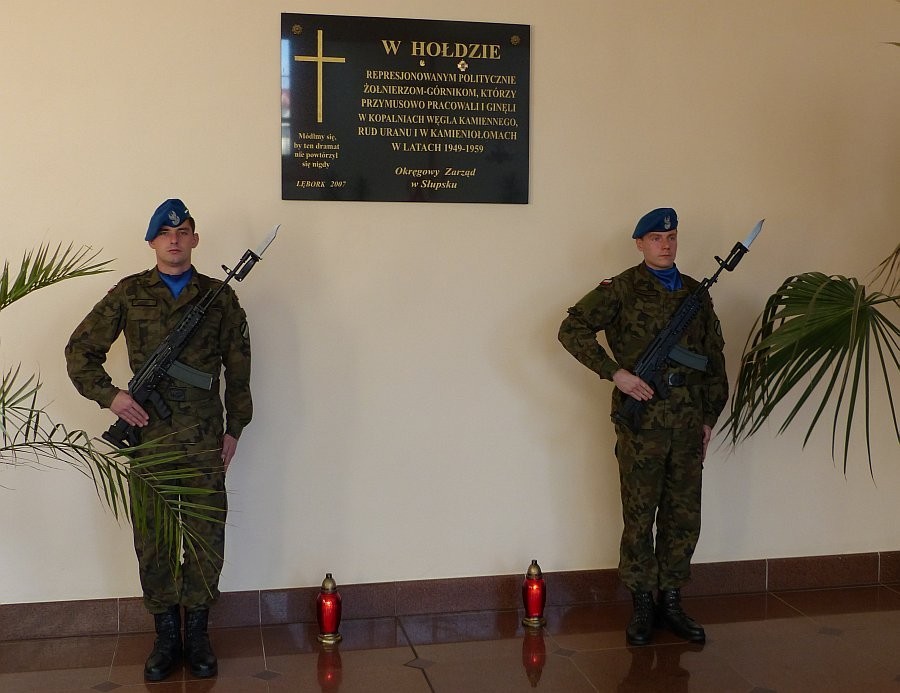 Po mszy, pod tablicą poświęconą pamięci żołnierzy-górników, którzy w okresie powojennym w ramach tzw. zastępczej służby wojskowej wcielani byli do batalionów pracy w kopalniach węgla kamiennego, rud uranu i kamieniołomach delegacje władz miejskich i powiatowych, organizacji, mieszkańcy i goście złożyli wiązanki kwiatów i zapalili znicze.