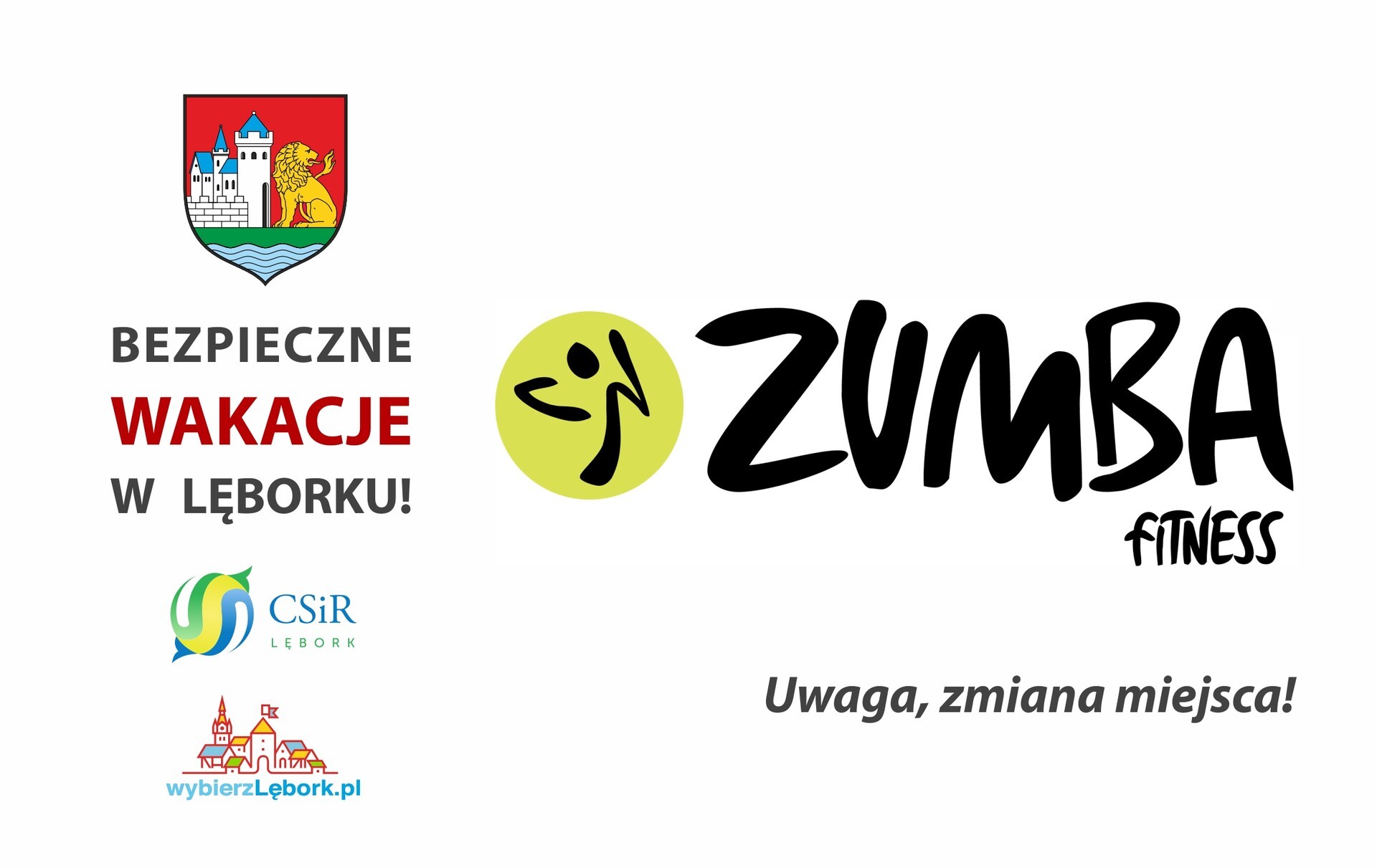Ze względu na zapowiadane niesprzyjające warunki atmosferyczne, zajęcia Zumby odbędą się 8 sierpnia o godz. 10:00 w Miejskiej Hali Sportowej w Lęborku przy ul. P. Skargi 52.