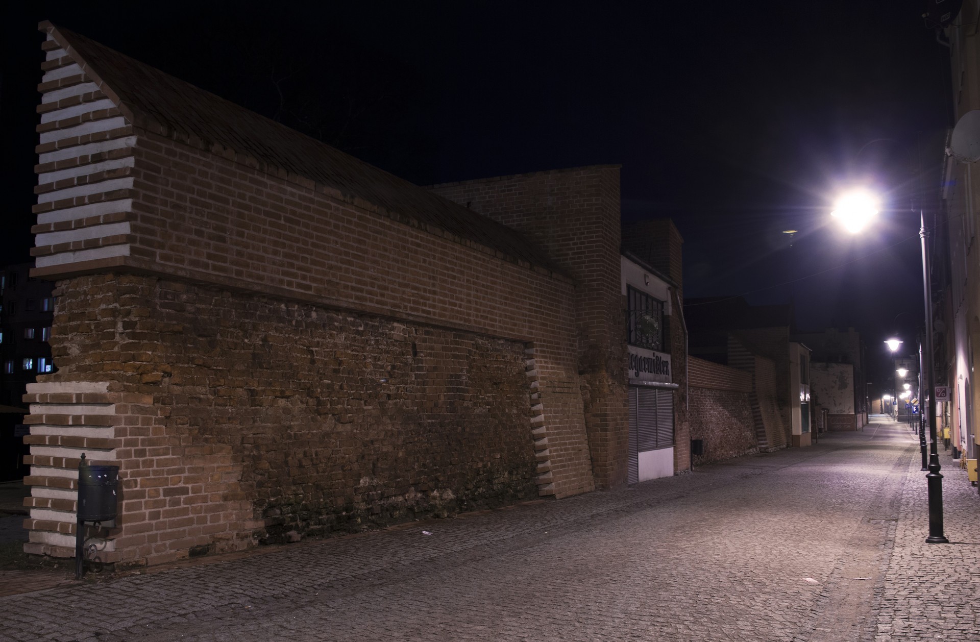Lębork jest jednym z niewielu miast na Pomorzu, które posiada dobrze zachowane średniowieczne mury obronne. Ich wznoszenie rozpoczęto w 1341 roku, a zakończono około 1363. Ich całkowita długość wynosiła 1220 metrów. Fortyfikacje posiadały 32 baszty i półbaszty, w tym baszty narożne, dwie bramy: Gdańską i Słupską oraz dwie furty. Mur obronny był wysoki na 6-10 m i nie posiadał blankowania. Mury zbudowane są z cegły o wątku polskim i wendyjskim. Niektóre fragmenty w partiach przyziemnych wzniesiono z granitowych otoczaków.