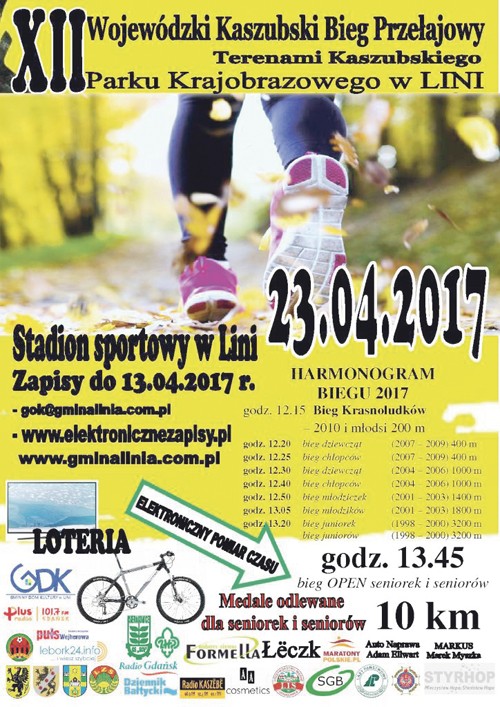 XII Wojewódzki Kaszubski Bieg Przełajowy terenami Kaszubskiego Parku Krajobrazowego - Stadion Sportowy w Lini, zapisy trwają do 13.04.2017r.