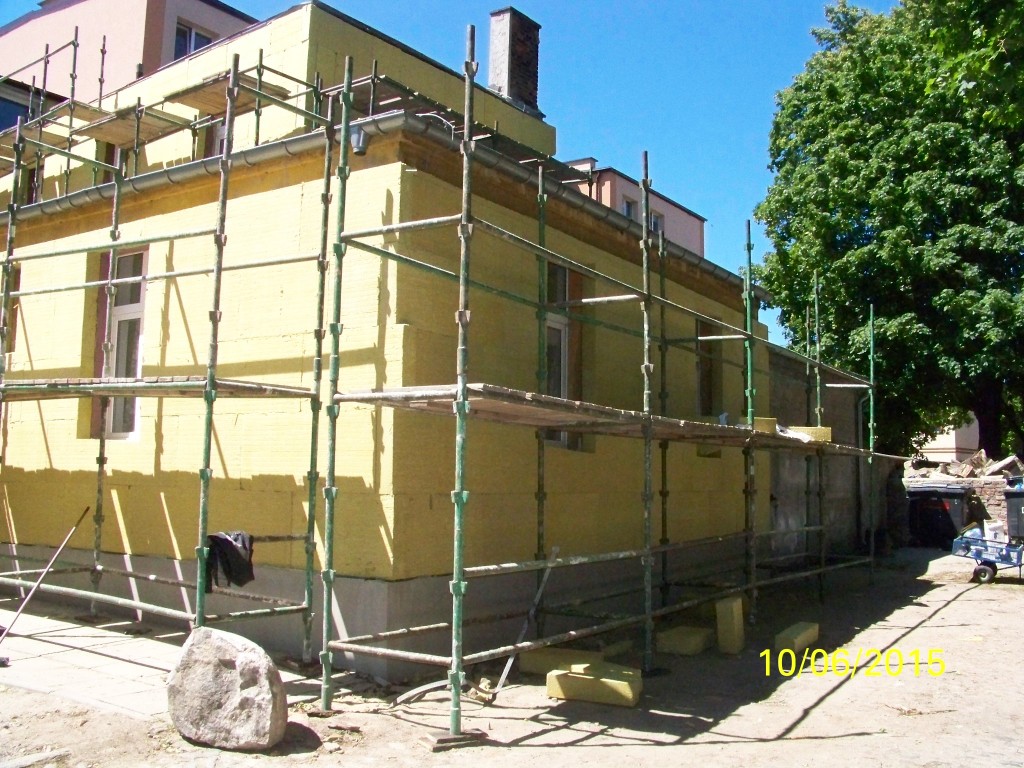 - docieplenie ścian zewnętrznych budynku (elewacji).